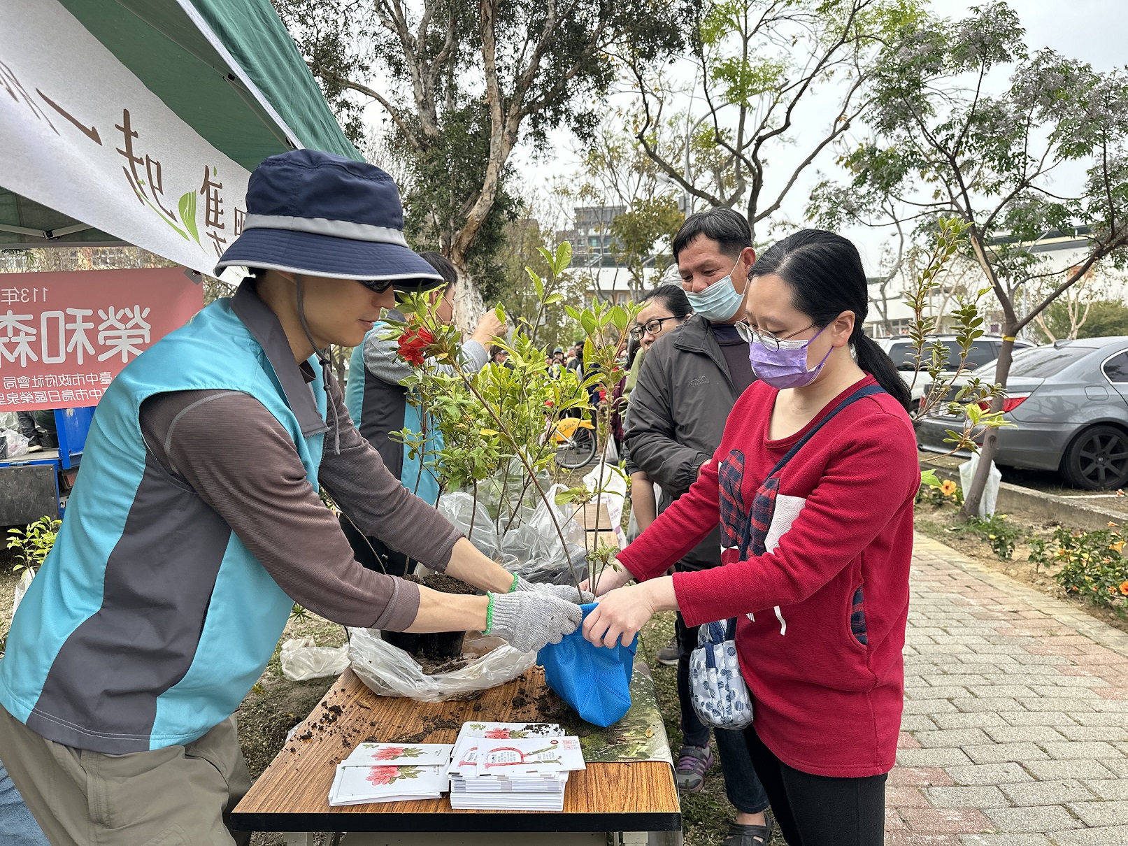 每年3月植樹月,是最適合植樹、綠美化家園的時候,林業及自然保育署臺中分署今天攜手榮和社區的民眾於松鼠公園舉辦綠美化及贈苗活動,種下月橘、田代氏石斑木等逾千株樹苗,贈送多種臺灣原生樹種苗木,鼓勵民眾綠美化家園的同時也能為減碳盡一份心力,現場約有300多位民眾踴躍響應『一起集點樹』。 位於臺中市烏日區的榮和社區參與林業保育署臺中分署的社區林業計畫,為了鼓勵居民參與生態保護及綠美化家園,今天於松鼠公園舉辦綠美化植樹活動,現場民眾攜老扶幼熱情參與,並透過林業保育署臺中分署人員詳細解說植樹的方法與注意事項,大家挽起袖子,一起栽植月橘900株及田代氏石斑木205株,除了增加公園中的綠覆蓋面積也讓生態環境更加豐富。同時現場也準備日本山茶、臺灣香檬、山黃梔各150株,以及金毛杜鵑200株供民眾領取,許多大小朋友一早就來到活動現場排隊領取苗木,讓大家將臺灣原生種苗木帶回家種植,好好照顧就能為生活增添綠意,同時也為減碳盡一份心力! 榮和社區自民國110年開始參與林業保育署臺中分署的社區林業計畫,透過每年營造一座特色公園,陸續於正和公園、榮和公園及松鼠公園辦理綠美化、植物DIY課程,並成立社區林業計畫工作坊,培訓社區居民進行公園的動植物調查,並希望透過公園綠美化的活動,凝聚居民在地意識,同時也能增強都市綠肺功能,建立供生物棲息的空間,創造與自然和諧的環境。 林業保育署臺中分署表示,至3月底尚有11場次的贈苗活動,贈苗相關資訊可至林業及自然保育署臺中分署網頁—最新消息查詢,提醒民眾在前往活動前務必確認活動資訊,自備環保提袋盛裝樹苗,響應環保減少塑膠垃圾產生,一起植樹護地球。