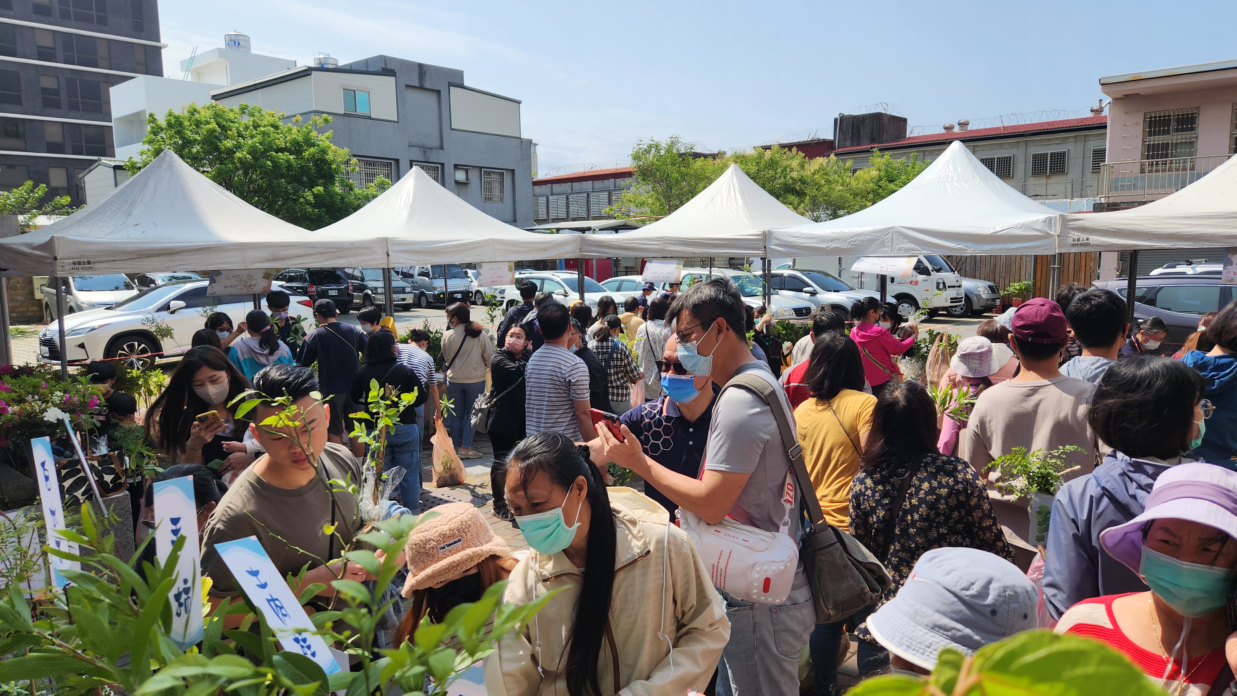當日兌換的苗木全部以環保材質盛裝,計有厚葉石斑木、臺灣海桐、黃荊、月橘、野牡丹、臺灣香檬、金毛杜鵑、含笑花、臺灣天仙果、蘭嶼肉豆蔻、大葉楠、臺灣樹蘭、烏心石、杜英、過山香、金新木薑子、楓香、土肉桂、文殊蘭、茵陳蒿、毬蘭、鐵線蕨等22種計2,500株可換取。另外,凡當日市集消費滿額的民眾,還可免費領取1株苗木(種類不挑,換完為止)。