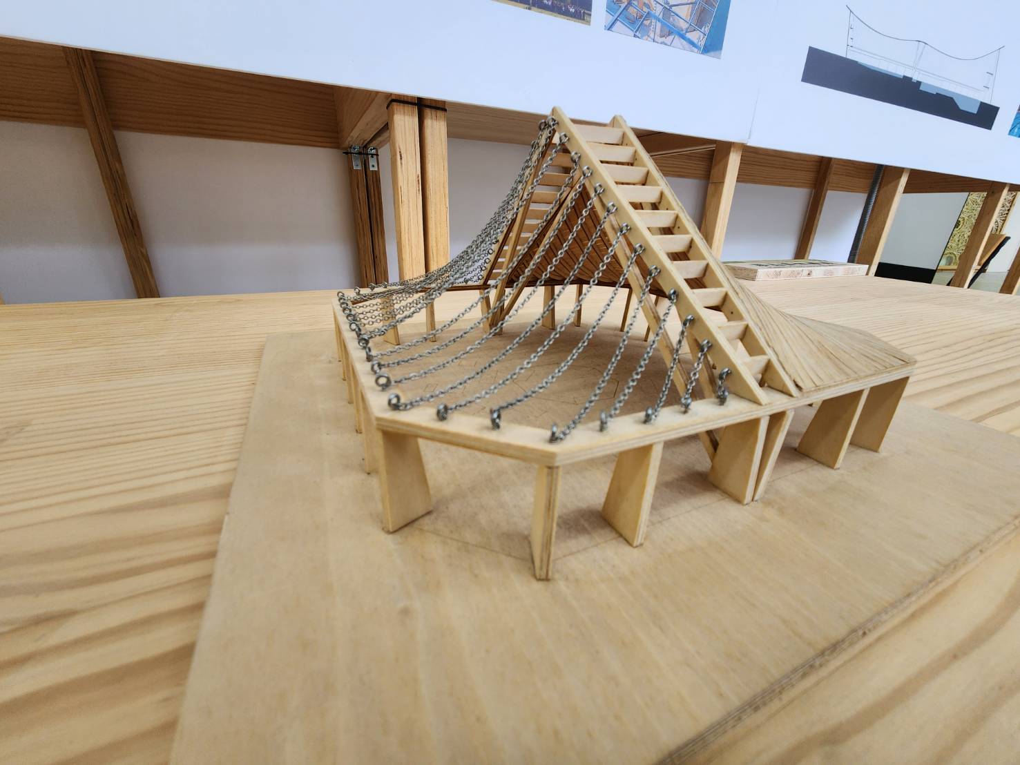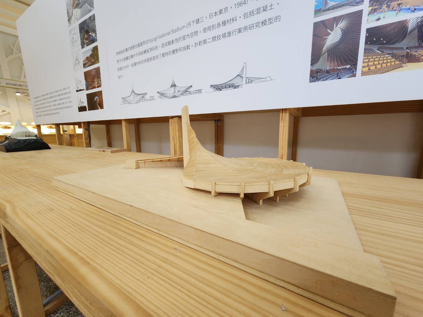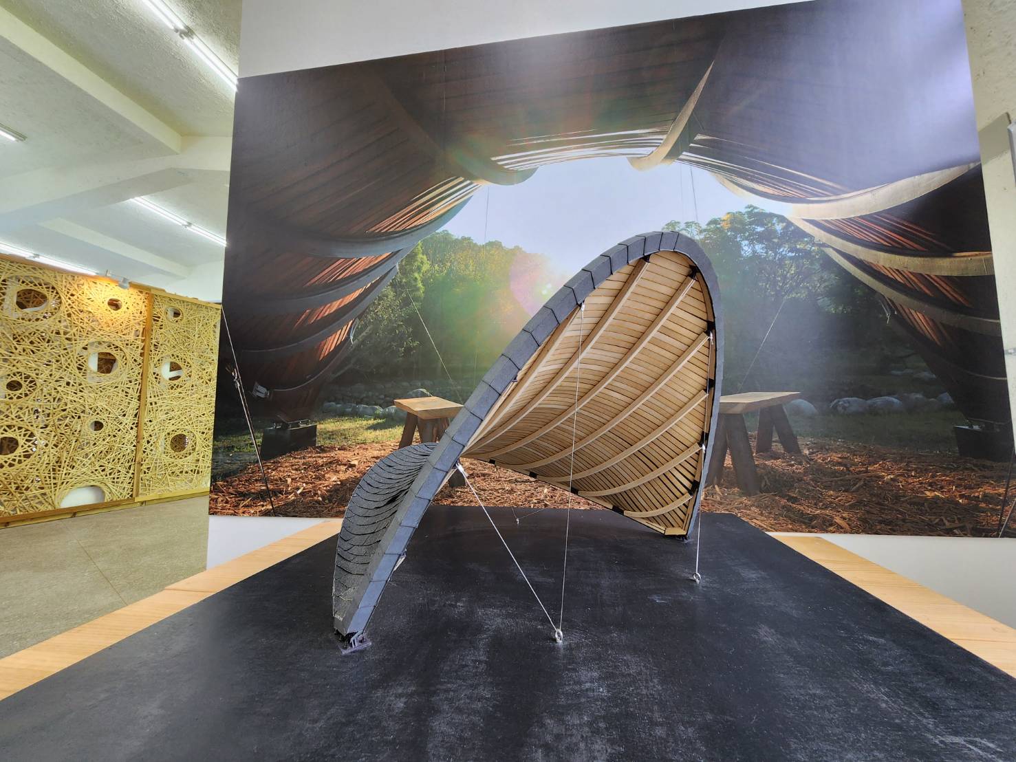 為期1個半月的特展,將透過多媒體、實體模型、平面展區,帶領民眾深入了解「弦閣 Katenara」的設計理念與製作過程。多媒體展區可以線上閱覽木結構組立期間捕捉的現場實況;實體模型通過立體視覺呈現出建築設計的精髓,展現空間配置、材料選擇和結構構想;平面展區呈現前期研究、建築設計概念以及空間規劃策略,透過複雜而具體的圖像,展示了設計師對建築的獨到見解,引領參觀者深入探索,體驗設計的豐富層次,並啟迪對木構建築美學的深刻理解。