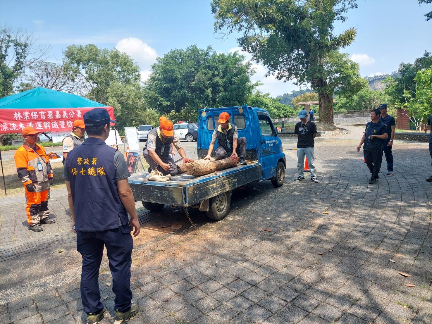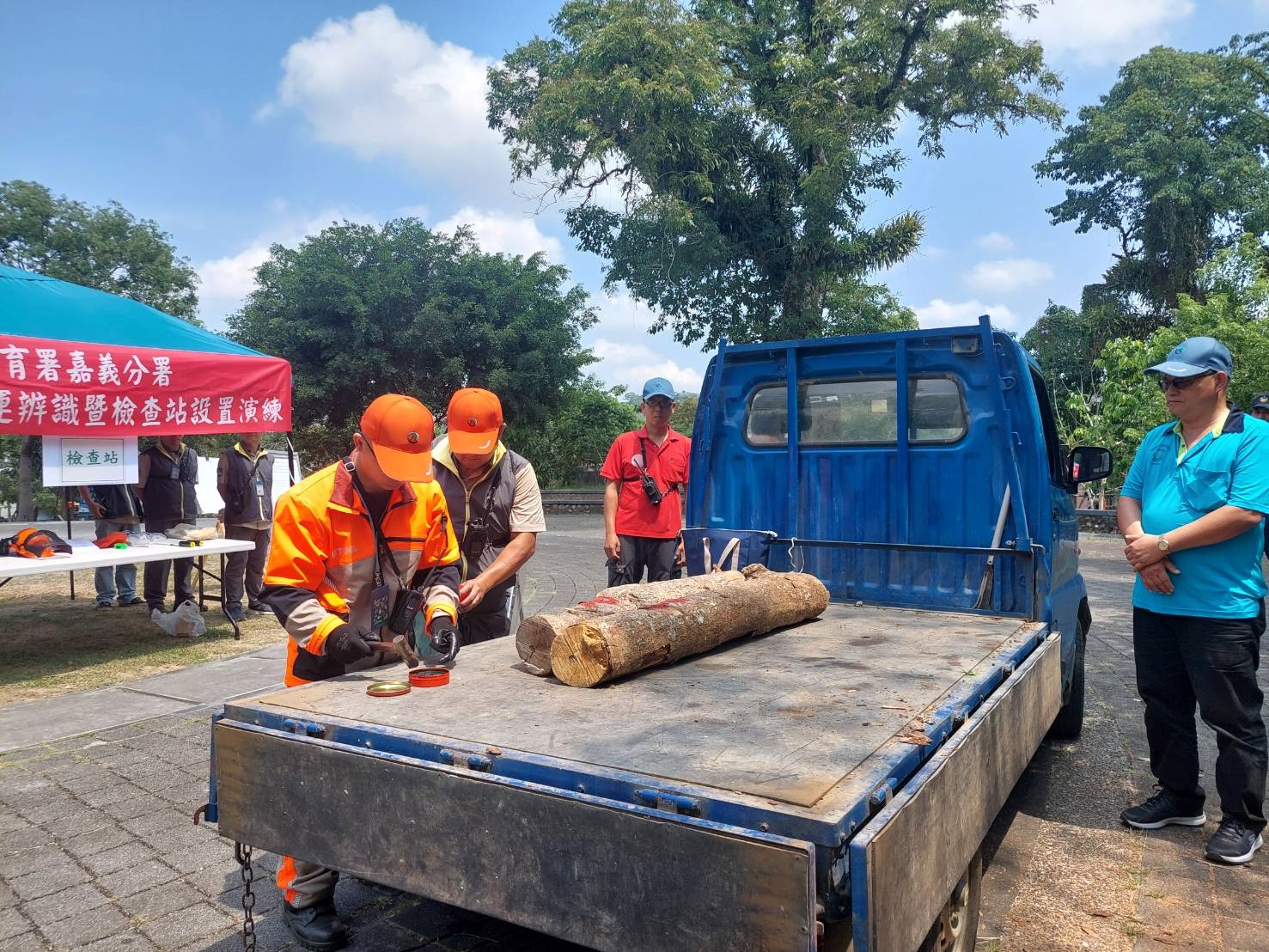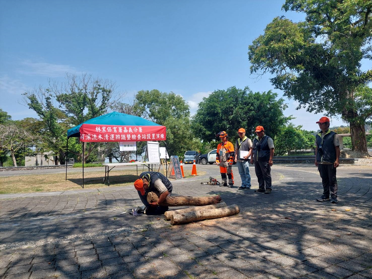 林業保育署嘉義分署表示,為加強各權責機關處理天然災害漂流木之標準作業流程,能及時進行打撈清理、辨識、註記、集運及查驗等作業,每年均會對於木材辨識、檢尺與分等辦理教育訓練,並進行模擬演練。演練分兩個階段進行,一開始模擬天然災害發生後,即啟動漂流木處理任務編組,由機動小組進行巡視,若有發現漂流木則通報鑑識小組,當場辨識、檢尺、打印及集運;第二階段強化撿拾規定應對,模擬公告民眾撿拾期間設置檢查站,並進行裝載漂流木之車輛於各種情境下之檢查、登記,演練過程逼真,除加強各機關橫向聯繫,並培養分工合作默契,期能提升緊急應變能力,達成”零災損”目標。