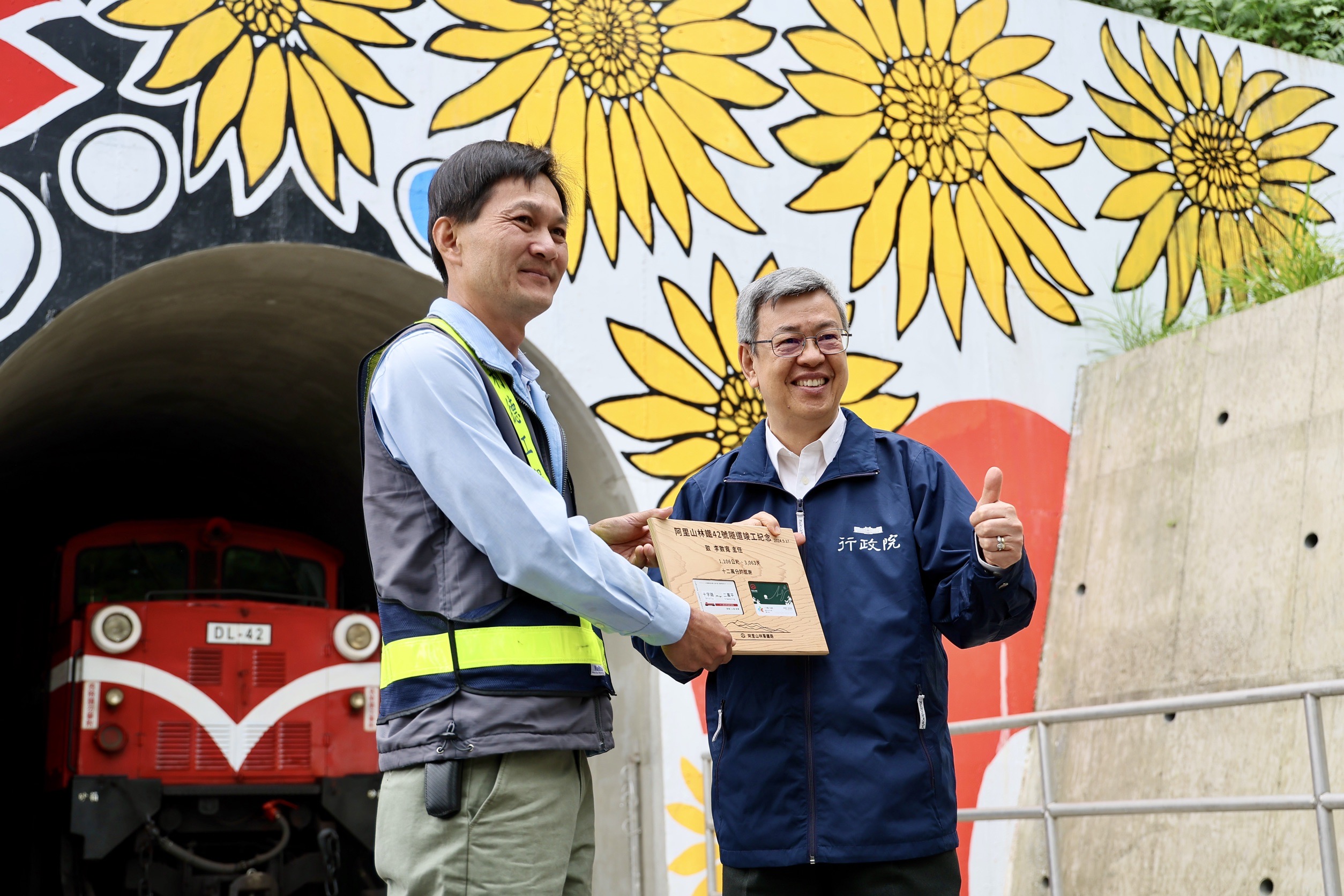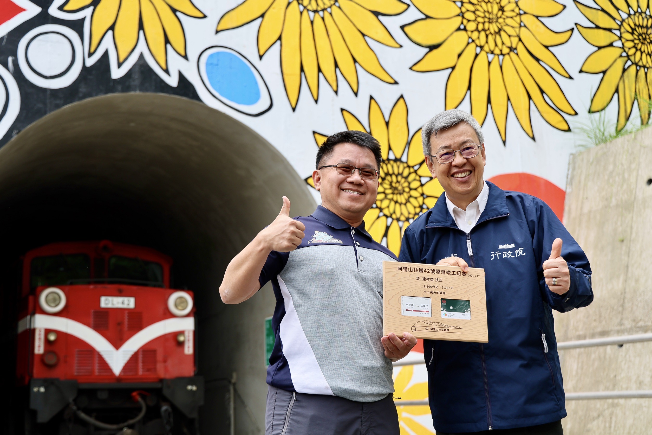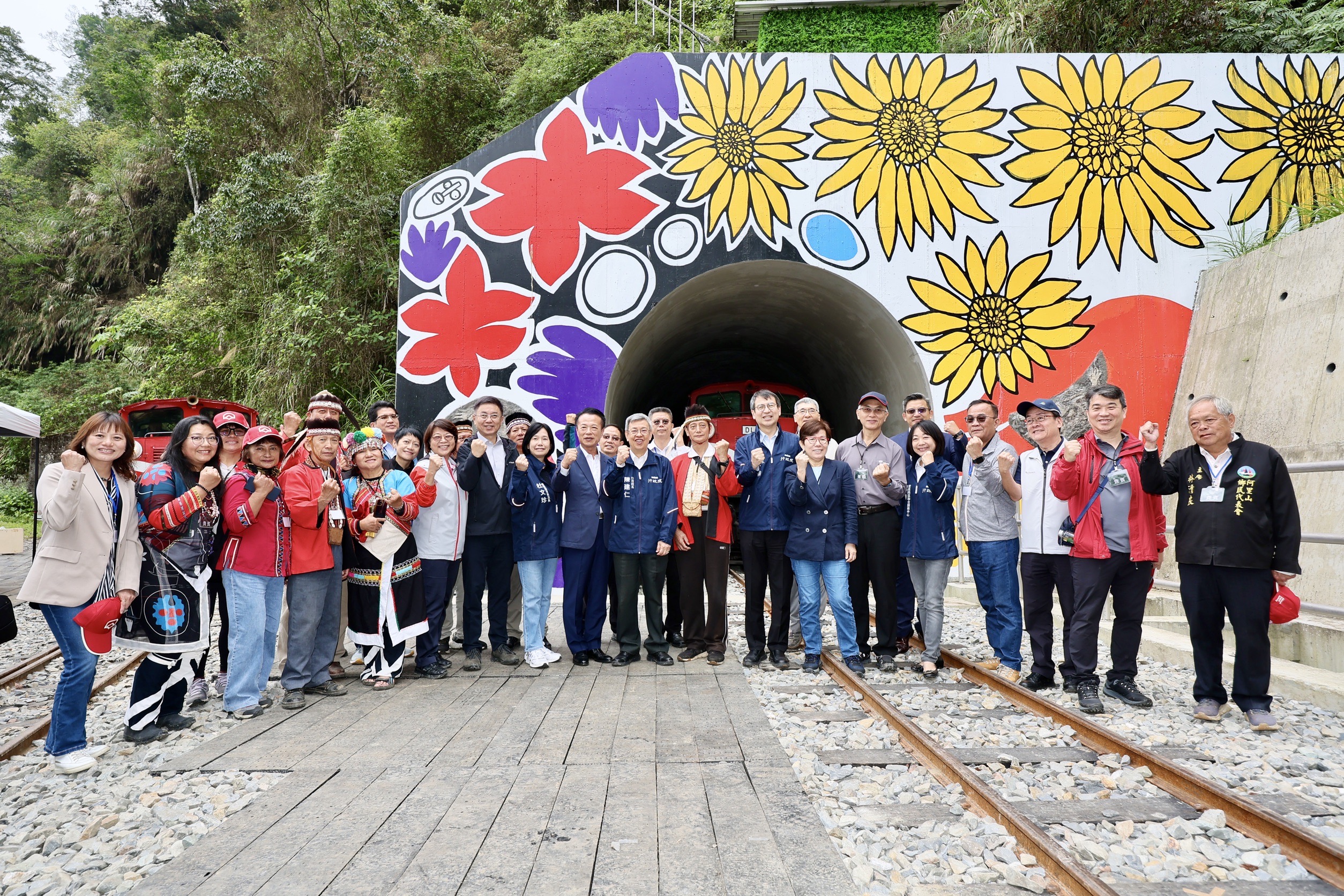 農業部林業及自然保育署阿里山林業鐵路及文化資產管理處(林鐵處)於今(17)日辦理42號隧道竣工典禮,由行政院陳建仁院長、農業部杜文珍次長、林業及自然保育署林華慶署長、林鐵及文資處黃妙修處長、林業及自然保育署嘉義分署張岱分署長、嘉義縣政府翁章梁縣長、嘉義市政府林建宏參議、阿里山鄉公所高瑞芳鄉長、阿里山鄉鄉民代表會林清良主席、鄒族特富野社汪義福頭目、鄒族特富野社長老阿里山鄉獵人協會高德生理事長、達邦社汪啟德頭目、來吉部落鄭秀琴主席、十字村許瑞文村長及各界代表共同見證歷史時刻。 阿里山林業鐵路於104年將莫拉克颱風造成421處災害復建完成,當年9月又因杜鵑颱風強力侵襲,十字路站至屏遮那站間的42號隧道發生2處共達55公尺的大型崩塌而停駛。經綜合評估決定新建1,106公尺的隧道,110年1月8日動工,歷經3年終於完成全線通車最後一哩路。 重視每一細節 兼顧環保與文化保存 這件工程設計理念採尊重自然生態與環境永續之減法工程,擇定堅硬岩盤,避開不穩定崩塌地;並連接既有43號隧道,減少開挖,僅設置一個隧道洞口,降低對周邊環境干擾。隧道內每隔40m設置一處避車洞,每200m設置避車道,提供緊急避難使用。 為克服偏遠山區無通達公路,為了不在河床新闢3公里的施工便道,以暫時性拆除1.3公里的既有鐵道作為機具和材料運輸通道,達到最小地貌與地景擾動;隧道開挖所產生3.2萬立方公尺的土石,就近利用穩定平台回填及噴植原生草種進行復育,兼具邊坡保護及避免土石外運造成空氣、噪音及交通影響等多重效益。 另外,保存既有42號隧道東、西洞口原貌,未來將作為環境及文化教育場所,不定期舉辦主題列車探索另類的阿里山。 鄒族傳統祈福 山神保祐一路順隧 典禮開始前,祈福儀式由鄒族特富野社汪義福頭目、鄒族特富野社陳明川長老、石明華長老、高德生長老及來吉部落梁崇效前主席面向隧道洞口的東方,誠心用鄒族母語向山神說明工程已經順利完工即將恢復行駛…,過程中邀請大家一起舉杯向山神敬酒,並與來賓分享豬肉、小米酒、糯米年糕等祭祀用品,祈求保佑林鐵火車出入安全,一路順隧。 不畏施工艱難 深獲院長讚許與表彰 本次竣工典禮特地邀請林鐵處工程主辦連祥益技正及工地主任李致寬先生分享施工過程面臨機具及材料運送、隧道開挖面送風、抽坍、湧水,受COVID-19疫情影響,人力短缺,以及遭遇俄烏戰爭,國內炸藥短缺等挑戰,以鐵路作為運輸道路、縮小材料尺寸、開設橫坑、加強支撐、止水灌漿、提升工率等方式,如何在不見天日的隧道內克服先天條件的種種限制,孤獨而堅毅地推進,順利如期如質完工。 行政院長陳建仁表示,工程人員離鄉背景,每天在濕冷的偏遠山區及暗無天日的隧道內日夜輪班工作,有時候好幾個月沒機會見到家人,感謝所有參與這件工程的施工人員共同打拚。並肯定林鐵處以創新思維,兼具環保與文化保存,並積極處理施工期間遭遇的諸多突發事件,以高環保高品質高效率完成這件42號隧道工程,讓國人期盼已久的阿里山林業鐵路全線通車,終於迎向曙光,並手持無線電話機宣布「42號隧道,正式啟用。」司機員接到指令回復「收到」後,隧道內編號DL-42機關車立即亮燈,鳴笛,獲得來賓的熱烈掌聲。 「十二萬分幸福」一卡通 一路暢通 本次竣工典禮特地邀請來吉村鄒族藝術家分享隧道洞口,充滿跨國的愛與溫暖彩繪創作故事;接著邀請在場人員一起搭乘火車體驗新建42號隧道現場,共同見證新舊隧道,也代表著林鐵未營運路段「十字路~二萬平」即將連通,而且行經最朗朗上口的Z字型路線(俗稱火車碰壁)的第一分道,因此推出「十二萬分幸福」一卡通,遊客可以儲值暢遊阿里山,為自己創造滿滿的幸福與回憶。