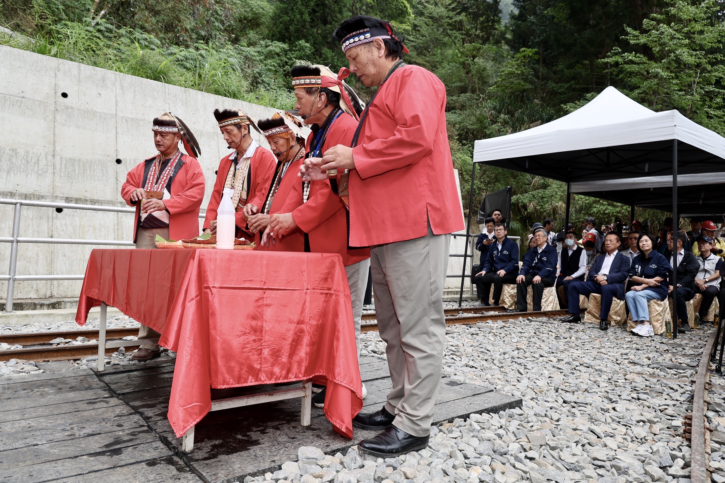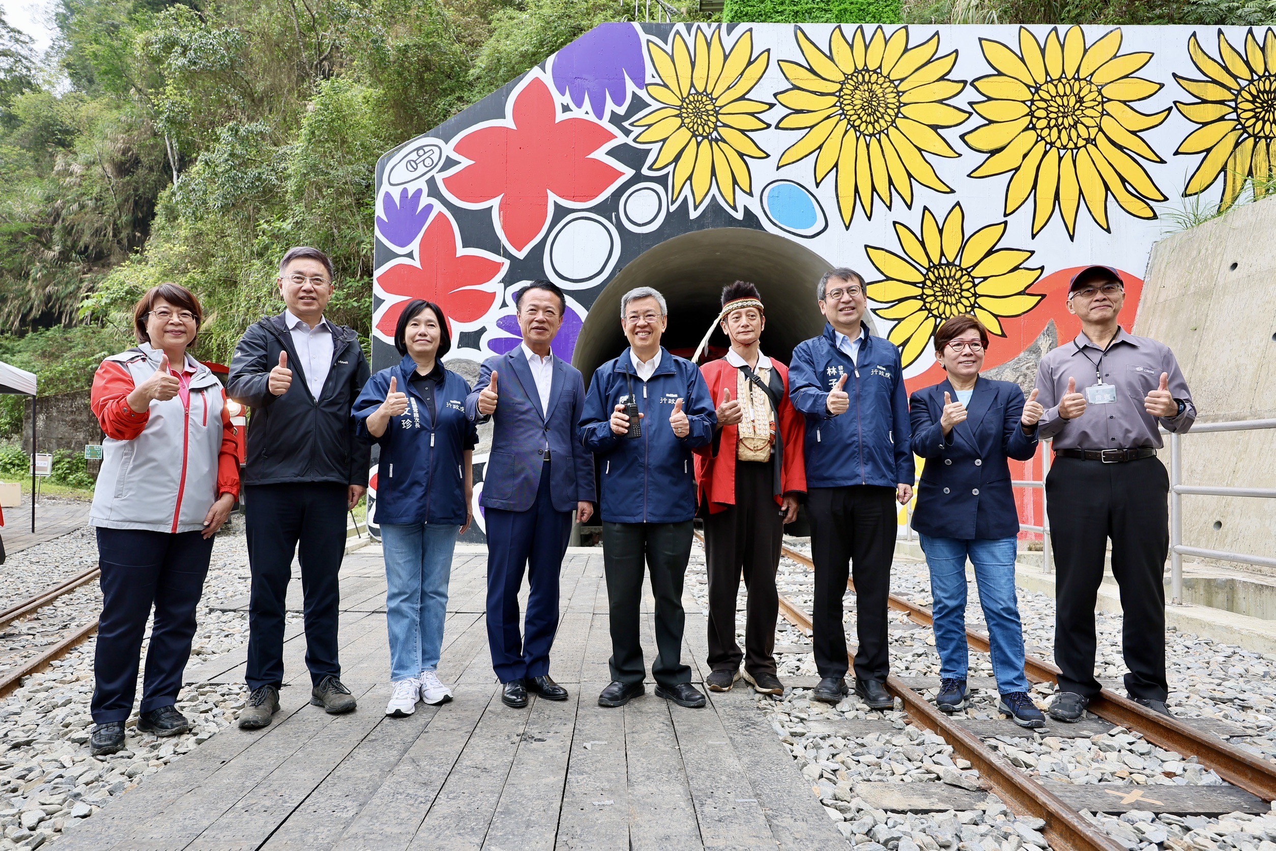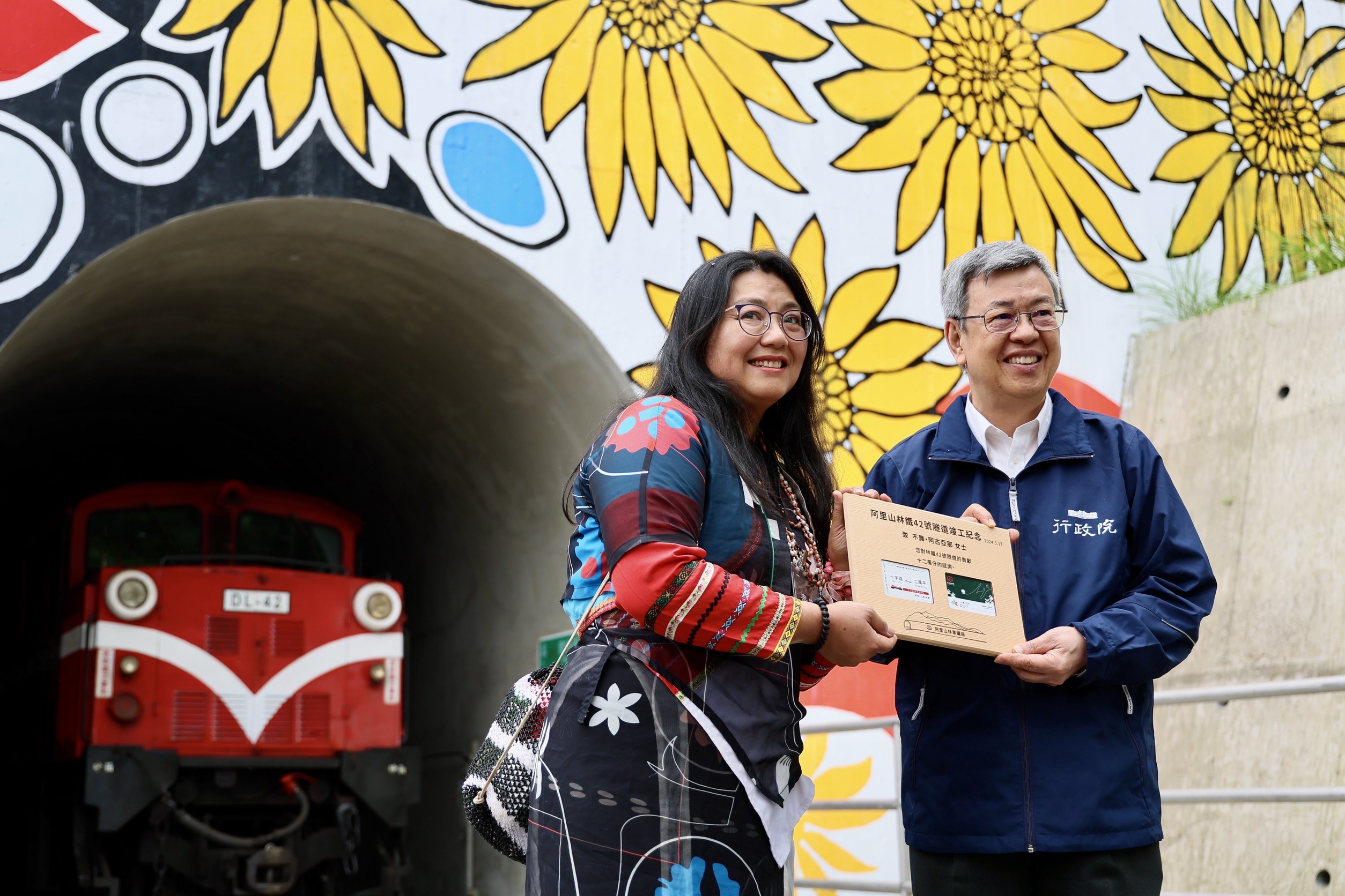 農業部林業及自然保育署阿里山林業鐵路及文化資產管理處(林鐵處)於今(17)日辦理42號隧道竣工典禮,由行政院陳建仁院長、農業部杜文珍次長、林業及自然保育署林華慶署長、林鐵及文資處黃妙修處長、林業及自然保育署嘉義分署張岱分署長、嘉義縣政府翁章梁縣長、嘉義市政府林建宏參議、阿里山鄉公所高瑞芳鄉長、阿里山鄉鄉民代表會林清良主席、鄒族特富野社汪義福頭目、鄒族特富野社長老阿里山鄉獵人協會高德生理事長、達邦社汪啟德頭目、來吉部落鄭秀琴主席、十字村許瑞文村長及各界代表共同見證歷史時刻。 阿里山林業鐵路於104年將莫拉克颱風造成421處災害復建完成,當年9月又因杜鵑颱風強力侵襲,十字路站至屏遮那站間的42號隧道發生2處共達55公尺的大型崩塌而停駛。經綜合評估決定新建1,106公尺的隧道,110年1月8日動工,歷經3年終於完成全線通車最後一哩路。 重視每一細節 兼顧環保與文化保存 這件工程設計理念採尊重自然生態與環境永續之減法工程,擇定堅硬岩盤,避開不穩定崩塌地;並連接既有43號隧道,減少開挖,僅設置一個隧道洞口,降低對周邊環境干擾。隧道內每隔40m設置一處避車洞,每200m設置避車道,提供緊急避難使用。 為克服偏遠山區無通達公路,為了不在河床新闢3公里的施工便道,以暫時性拆除1.3公里的既有鐵道作為機具和材料運輸通道,達到最小地貌與地景擾動;隧道開挖所產生3.2萬立方公尺的土石,就近利用穩定平台回填及噴植原生草種進行復育,兼具邊坡保護及避免土石外運造成空氣、噪音及交通影響等多重效益。 另外,保存既有42號隧道東、西洞口原貌,未來將作為環境及文化教育場所,不定期舉辦主題列車探索另類的阿里山。 鄒族傳統祈福 山神保祐一路順隧 典禮開始前,祈福儀式由鄒族特富野社汪義福頭目、鄒族特富野社陳明川長老、石明華長老、高德生長老及來吉部落梁崇效前主席面向隧道洞口的東方,誠心用鄒族母語向山神說明工程已經順利完工即將恢復行駛…,過程中邀請大家一起舉杯向山神敬酒,並與來賓分享豬肉、小米酒、糯米年糕等祭祀用品,祈求保佑林鐵火車出入安全,一路順隧。 不畏施工艱難 深獲院長讚許與表彰 本次竣工典禮特地邀請林鐵處工程主辦連祥益技正及工地主任李致寬先生分享施工過程面臨機具及材料運送、隧道開挖面送風、抽坍、湧水,受COVID-19疫情影響,人力短缺,以及遭遇俄烏戰爭,國內炸藥短缺等挑戰,以鐵路作為運輸道路、縮小材料尺寸、開設橫坑、加強支撐、止水灌漿、提升工率等方式,如何在不見天日的隧道內克服先天條件的種種限制,孤獨而堅毅地推進,順利如期如質完工。 行政院長陳建仁表示,工程人員離鄉背景,每天在濕冷的偏遠山區及暗無天日的隧道內日夜輪班工作,有時候好幾個月沒機會見到家人,感謝所有參與這件工程的施工人員共同打拚。並肯定林鐵處以創新思維,兼具環保與文化保存,並積極處理施工期間遭遇的諸多突發事件,以高環保高品質高效率完成這件42號隧道工程,讓國人期盼已久的阿里山林業鐵路全線通車,終於迎向曙光,並手持無線電話機宣布「42號隧道,正式啟用。」司機員接到指令回復「收到」後,隧道內編號DL-42機關車立即亮燈,鳴笛,獲得來賓的熱烈掌聲。 「十二萬分幸福」一卡通 一路暢通 本次竣工典禮特地邀請來吉村鄒族藝術家分享隧道洞口,充滿跨國的愛與溫暖彩繪創作故事;接著邀請在場人員一起搭乘火車體驗新建42號隧道現場,共同見證新舊隧道,也代表著林鐵未營運路段「十字路~二萬平」即將連通,而且行經最朗朗上口的Z字型路線(俗稱火車碰壁)的第一分道,因此推出「十二萬分幸福」一卡通,遊客可以儲值暢遊阿里山,為自己創造滿滿的幸福與回憶。