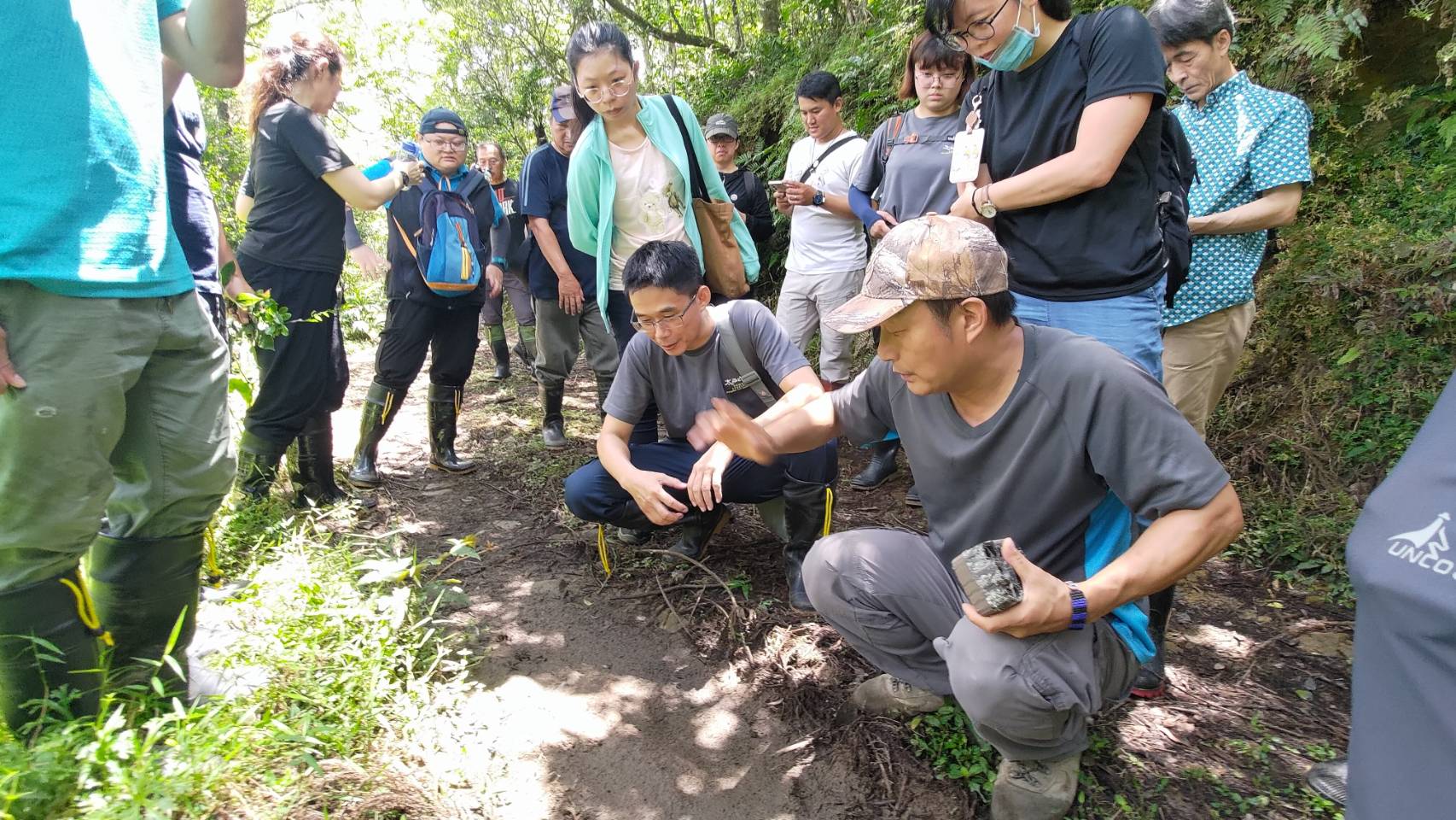 林業及自然保育署宜蘭分署為強化分署同仁與志工夥伴執行野生動物保育工作之野外生態觀察能力,於113年6月7日、6月13日邀請臺灣知名生態觀察家林青峯老師於所轄四堵苗圃舉行野生動物獸跡判釋教育訓練,6月7日的室內課程林青峯老師以生動活潑的方式分享他多年從事生態觀察的心路歷程、冒險故事及野外拍攝的影像紀錄與自製標本,帶領大家認識野生動物的各種痕跡(獸徑、排遺、足印、叫聲、巢穴…等)。6月13日的實務操作則帶領大家前往淡蘭古道南路進行獸跡巡蹤和紅外線自動照相機選址的操作,沿途林青峯老師化身偵探一一破解野生動物遺留下的線索,可見山豬蹄印、小型食肉目(果子狸、食蟹獴…)足印、山羌排遺、各種鳥鳴等…,分署同仁驚喜連連,也能增進自身本質學能。