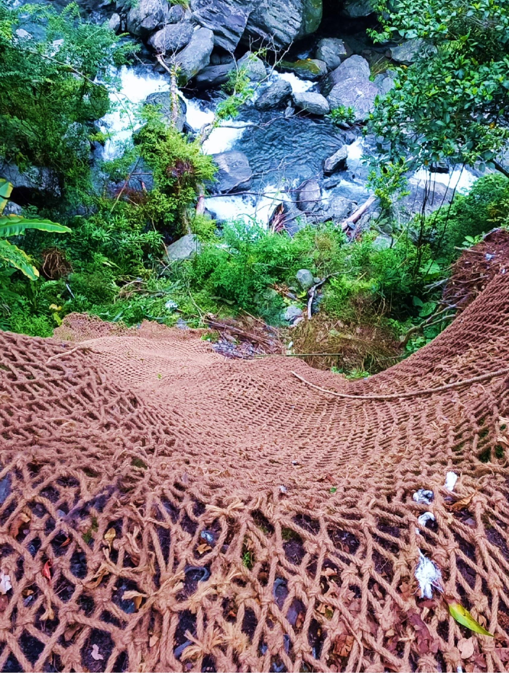 該分署進一步說明,麻繩網具有生物降解性,不會對環境造成污染及影響木本植物的生長,對於生態景觀及動物穿越性亦較具優點,同時透過實際拉拔試驗符合抗拉強度要求,運用在崎嶇不平的崩塌地,則展現出良好的伏貼性和植生基材的附著性,為崩塌地復育工程材料新選擇。