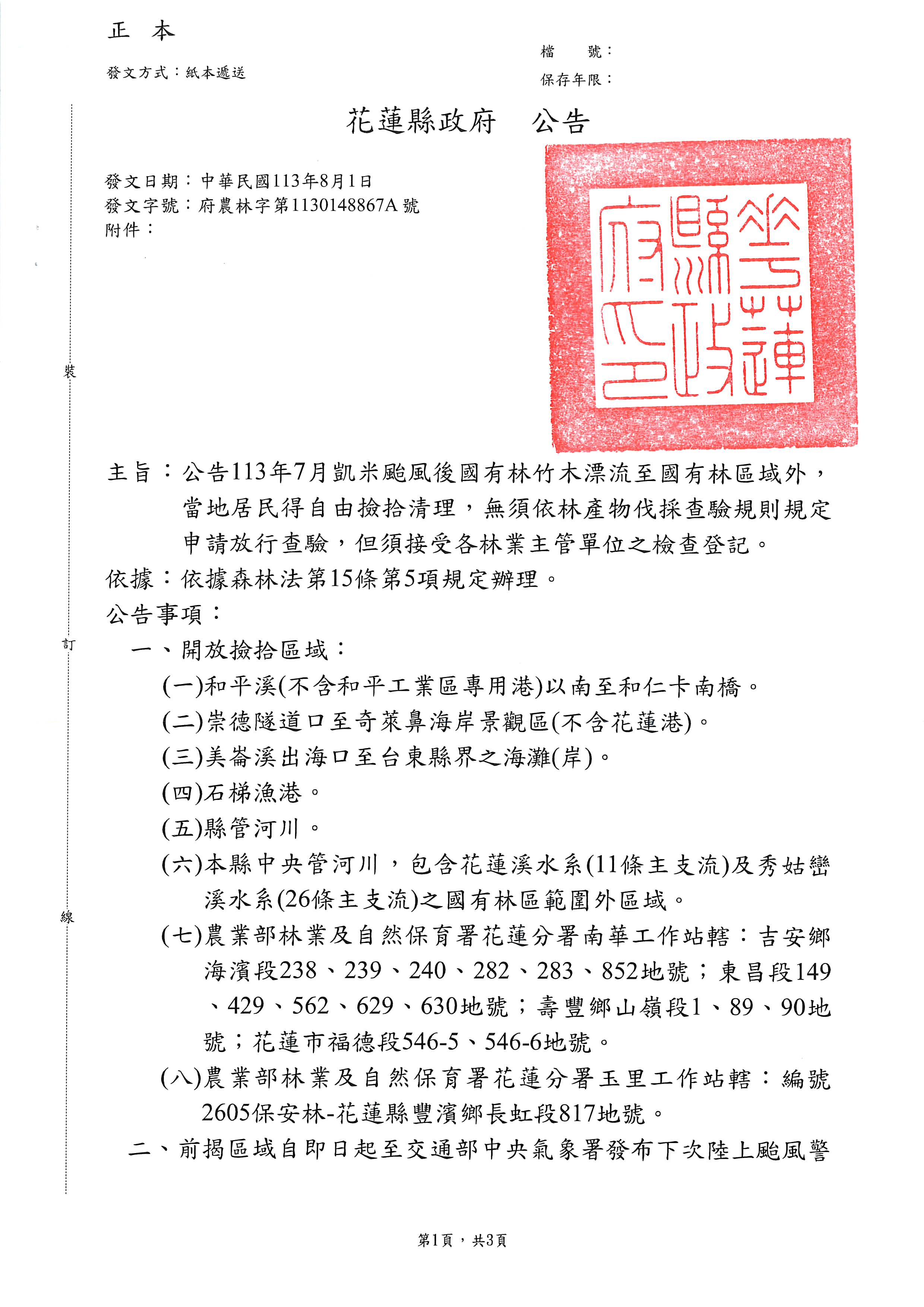 2024-08-02最新消息花蓮分署