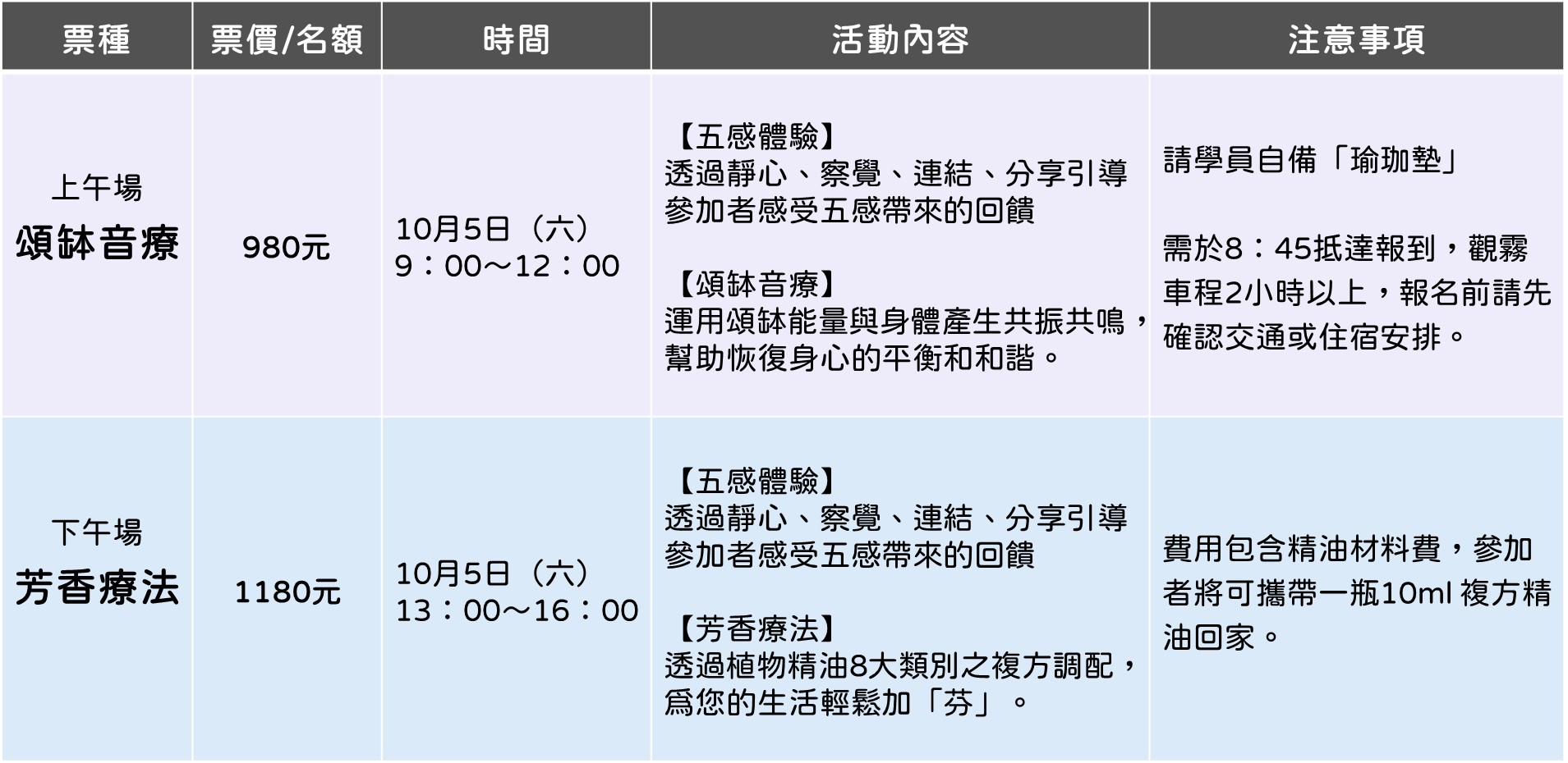觀霧森林以雲霧繚繞而聞名,霧氣滋養了豐富的生態環境,創造清新空氣與寧靜氛圍。來到觀霧,您可以聆聽最純淨的自然音、感受微風吹拂、呼吸清新空氣,讓身心得到放鬆療癒。 林業及自然保育署新竹分署特別舉辦「雲音繚繞-雲霧森林療癒之旅」主題活動,邀請由「林業保育署森林療癒師認證培訓平臺」授證的森林療癒師帶領民眾走進音場純淨的觀霧森林,感受五感帶來的回饋。本活動將於113年10月5日(六)在觀霧國家森林遊樂區舉行,活動分為兩場次,上午場「頌缽音療」於09:00在觀霧瀑布步道及牡丹莊舊址草坪進行,下午場「芳香療法」則於13:00在蜜月小徑及觀霧遊客中心舉行。 林業保育署新竹分署說明,本次主題活動上午場「頌缽音療」的頌缽是一種來自喜馬拉雅山的古老樂器,透過敲擊會產生深沉而悠揚的泛音,運用頌缽能量與身體產生共振共鳴,幫助恢復身心的平衡和和諧;而下午場「芳香療法」則是藉由植物精油8大類別之複方調配,爲體驗者的生活輕鬆加「芬」。 新竹分署夏榮生分署長表示,森林療癒源於日本的「森林浴」,透過自然環境促進身心健康,減少壓力、提升免疫力。觀霧國家森林遊樂區擁有清新空氣、寧靜氛圍以及豐富自然景觀與良好步道設施,是進行森林療癒的理想地點。 「雲音繚繞-雲霧森林療癒之旅」主題活動將於9月6日(五)上午8點起開放網路報名,招收高中一年級(含)以上一般民眾,活動名額有限,歡迎有興趣的民眾把握機會報名參加。活動內容、收費方式請詳參報名連結https://www.accupass.com/go/2024-05-Guanwu,亦可於平日上午9點至下午5點電洽0963511973(森之形自然教育團隊)。更多活動訊息歡迎關注「觀霧國家森林遊樂區」臉書粉絲專頁(https://www.facebook.com/GuanwuNationalForest/),更多旅遊資訊可上台灣山林悠遊網(https://recreation.forest.gov.tw/)查詢。