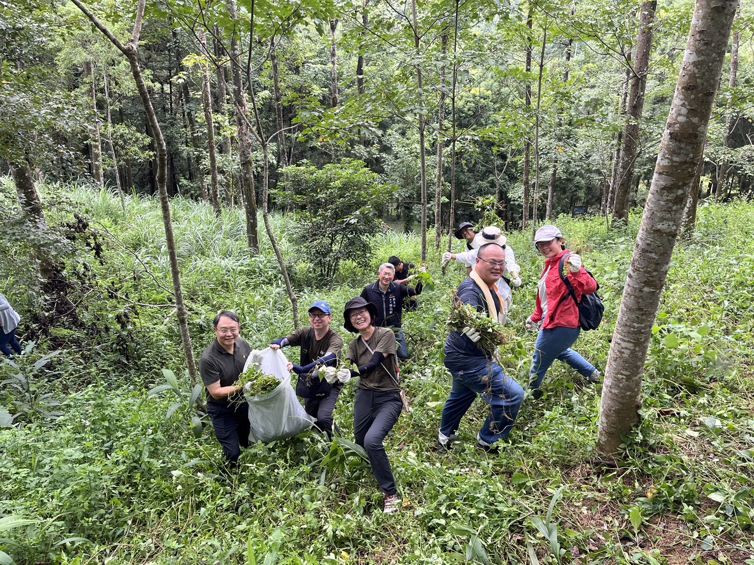 小花蔓澤蘭俗稱綠癌,是著名的植物殺手,為了移除小花蔓澤蘭,林業及自然保育署臺中分署今日在東勢區東勢林場遊樂區舉辦「齊除蔓‧全民讚~小花蔓澤蘭防治啟動日」活動,攜手臺中市政府農業局、彰化縣農會、兆豐金融集團、臺灣美光記憶體股份有限公司、吉康食品股份有限公司及救國團台中市大甲區團委會等單位共360人,合力移除200公斤小花蔓澤蘭,並運用拔除乾燥後的小花蔓澤蘭混合其他天然植物獨創製成天然環保的防蚊香錐,以實際行動維護棲地環境及生物多樣性,為臺灣的本土生態環境盡一份心力。