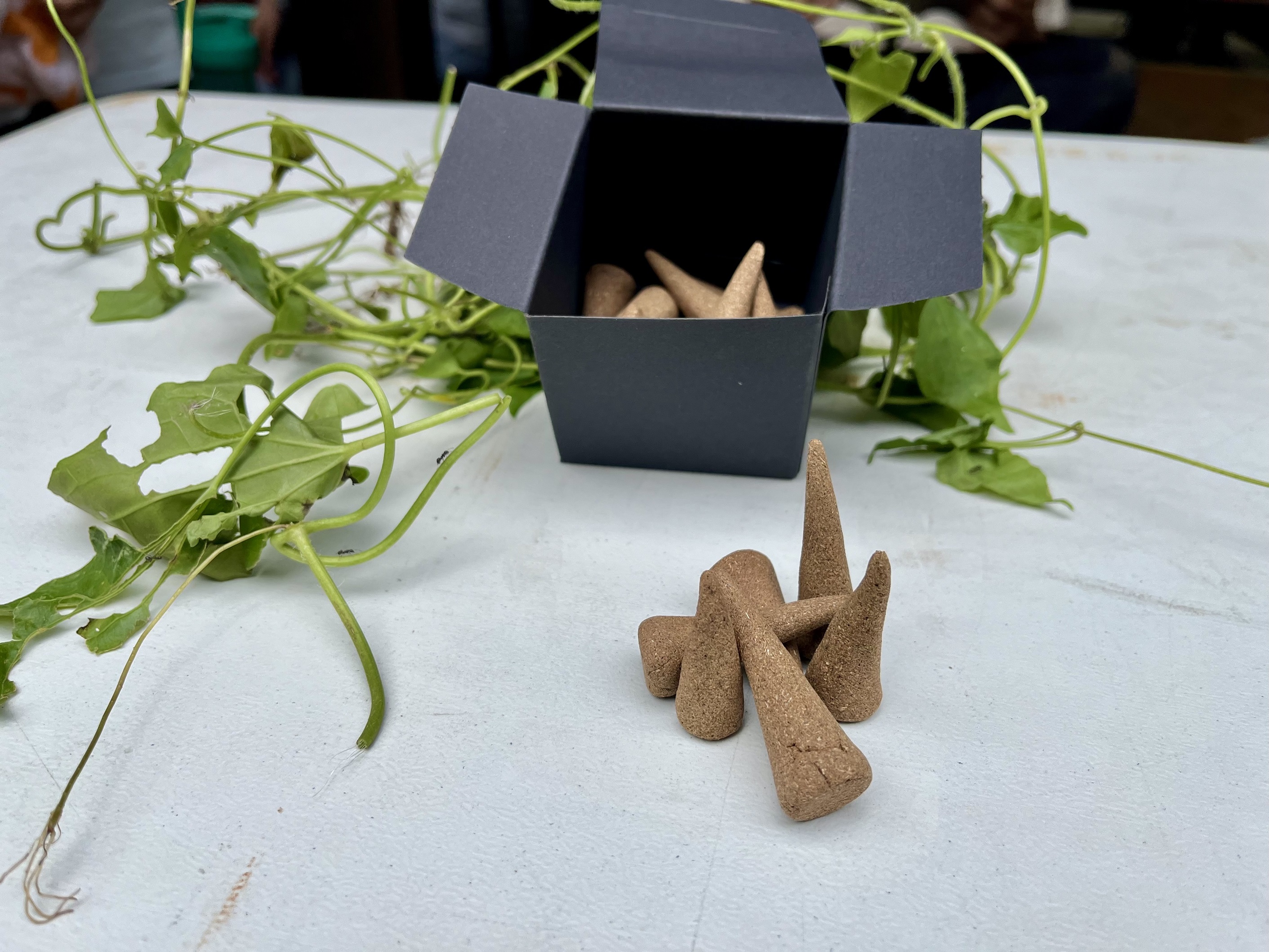 林業保育署臺中分署表示,今日活動除宣誓除蔓決心,多家企業更發動員工攜家帶眷,一起捲起袖子除蔓保護生態,善盡企業對社會及環境的責任。為了善用綠資源,邀請百年老香鋪—林源美香舖第六代傳人,現場指導民眾DIY防蚊香錐,運用拔除後乾燥的小花蔓澤蘭所磨成的粉末,混合土肉桂葉、臺灣扁柏、艾草及香茅等中藥材料,製作天然無化學農藥的防蚊香錐,讓在移除外來種的同時,也達到環境保護及永續的綠色價值,更鼓勵民眾在日常生活中使用環保、天然的再利用產品,來達到入侵植物防治的效果。
