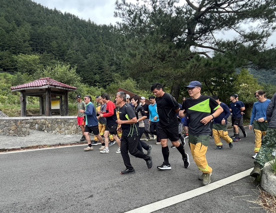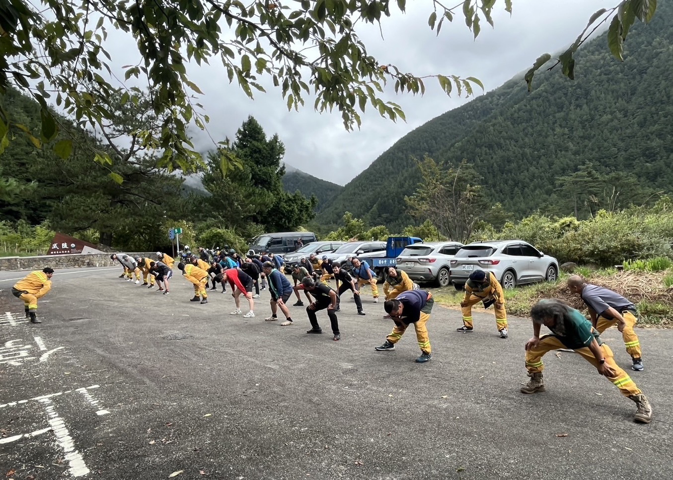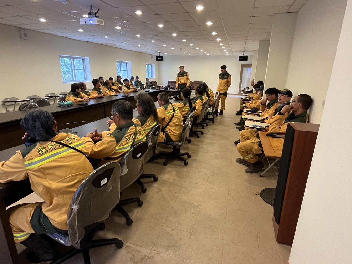 梨山地區因地形、林相等因素,一旦發生森林火災通常延燒快速,為提升搶救效率並增進機關間救災默契,林業及自然保育署臺中分署特於今(113)年9月24、25日於梨山舉辦「高海拔森林火災搶救支援共同演練」,聯合林業保育署宜蘭分署、花蓮分署近40名森林護管員,實地模擬高海拔森林火災搶救情境,精進合作救災技巧,今年更納入3000公尺跑步體能測驗,讓隊員體會並適應高山氣候、氣壓環境,在艱困環境中充分發揮既有能力及專業。