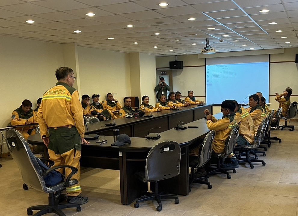 梨山地區位屬中高海拔,森林火災搶救方式與平地不同且難度甚高,火災發生地點通常人力難以到達且缺乏水源,因此特別安排此次實境模擬聯合演練及兵棋推演,分組觀察、分析現場地形與林相,研擬防火線開闢相關實務,以及MIST最小影響滅火戰術執行探討;除此之外,為使救火人員適應高山環境,在中高海拔環境下仍能發揮體能優勢,今年特別規劃在海拔1800公尺的武陵地區完成3,000公尺跑步體能測驗,提升山域適應能力,加強救援能量。
