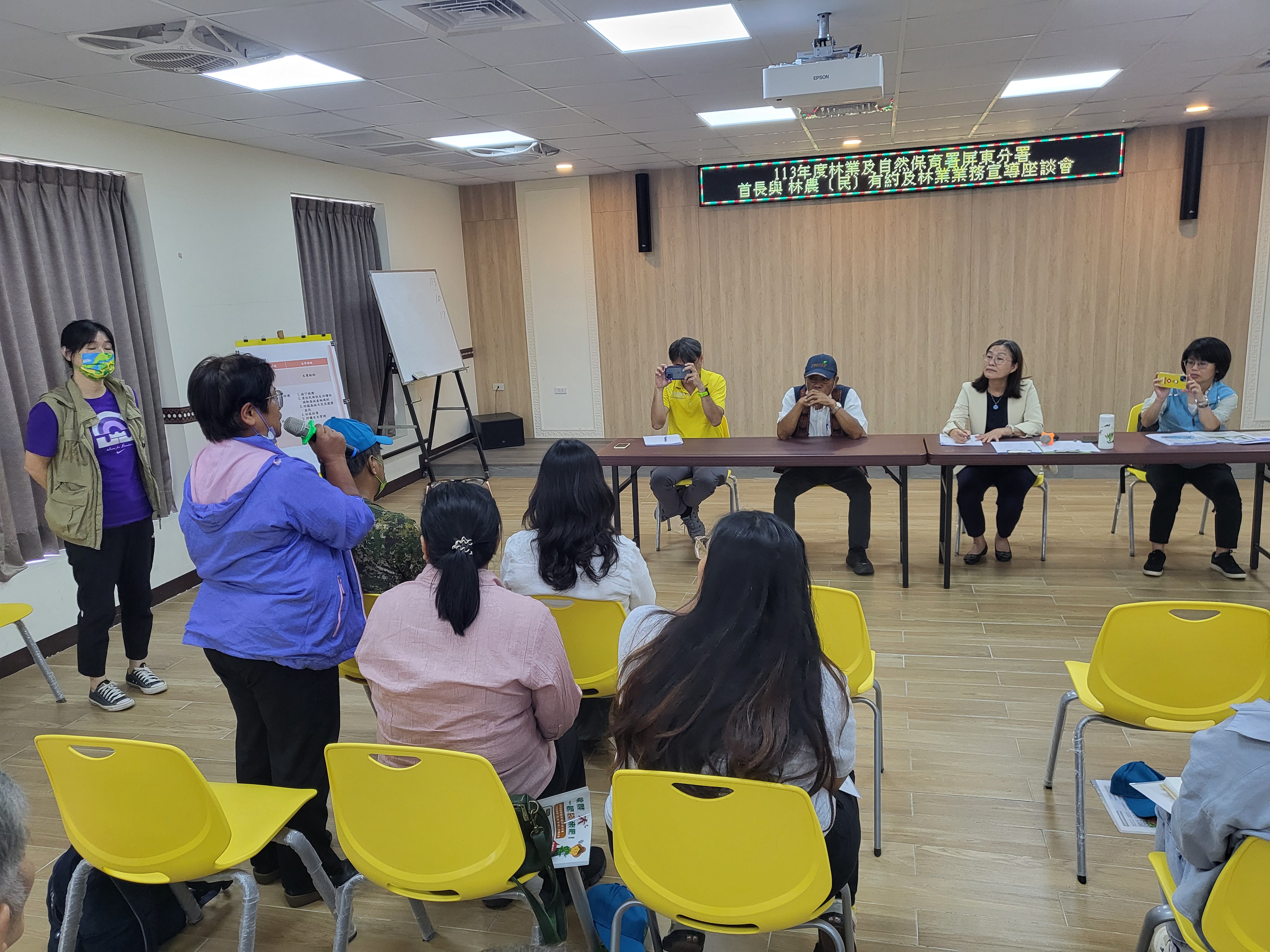 座談會宣導內容包含林下經濟、原住民族依生活慣俗採取森林產物規則、防範森林火災及濫墾盜伐、推動社區林業及狩獵自主管理等。現場民眾積極發言,從提問中了解到民眾在意的是租約續約、苗木要怎麼取得、土地增劃編、狩獵文化復振及咖啡為什麼不能列林下經濟項目等等。