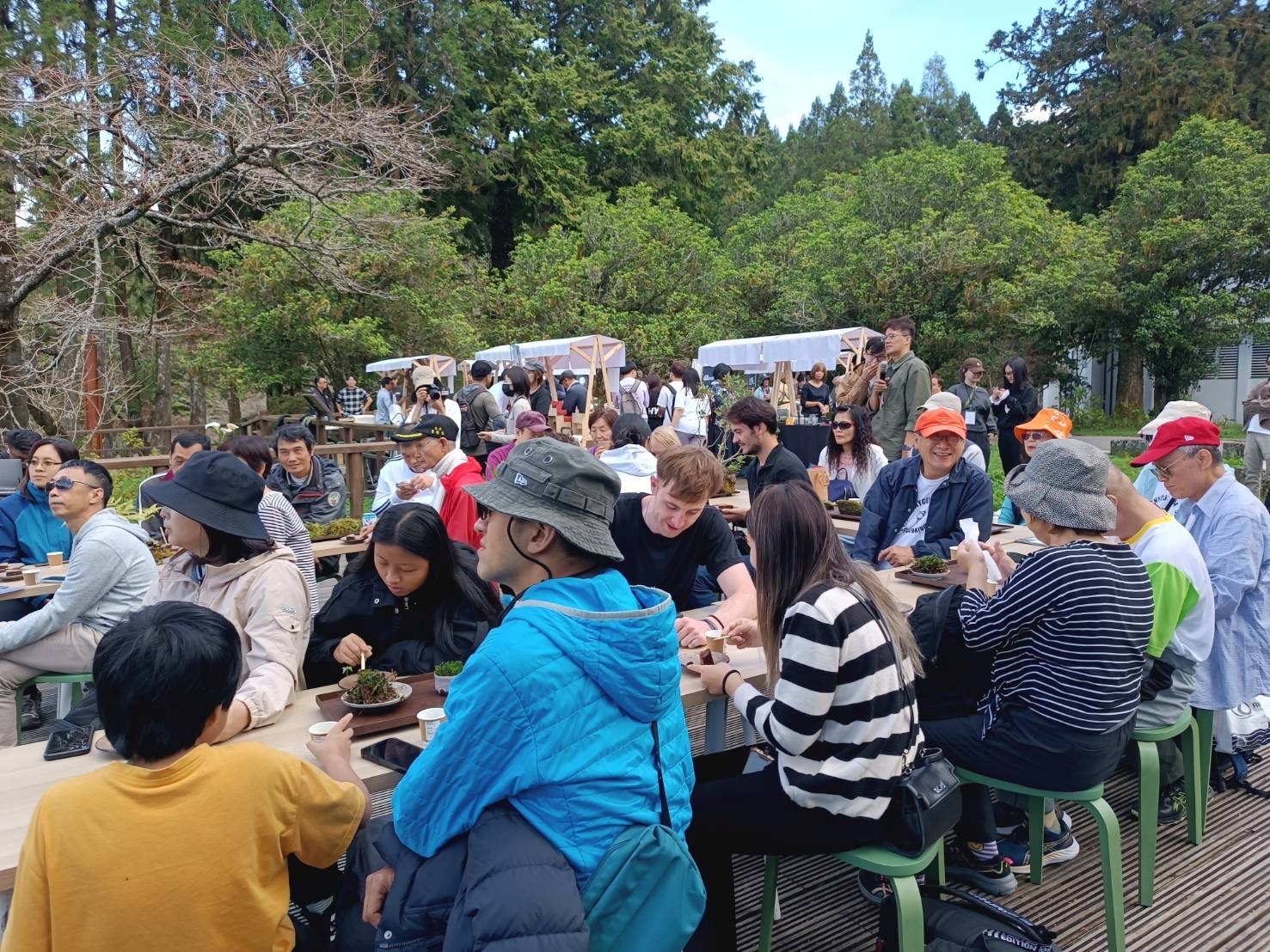 此外,活動現場還設置品牌小沙龍,集結多家特色咖啡品牌,包括飛鼠咖啡、阿豊杉商店、ABEES、日日製造、木葉粗食、熳珈琲等品牌攤位,為遊客提供多樣化的咖啡產品與特色山食,從蜂蜜咖啡、優格與分子蛋糕到漢堡,每一款餐食都巧妙融合阿里山的在地食材與品牌風格。遊客在品味咖啡的同時,還能與各品牌咖啡師進行交流,感受自己的五感品味及深入理解每個品牌的風格與故事,這些精挑細選的品牌,完美展現了阿里山咖啡與在地食材的結合。