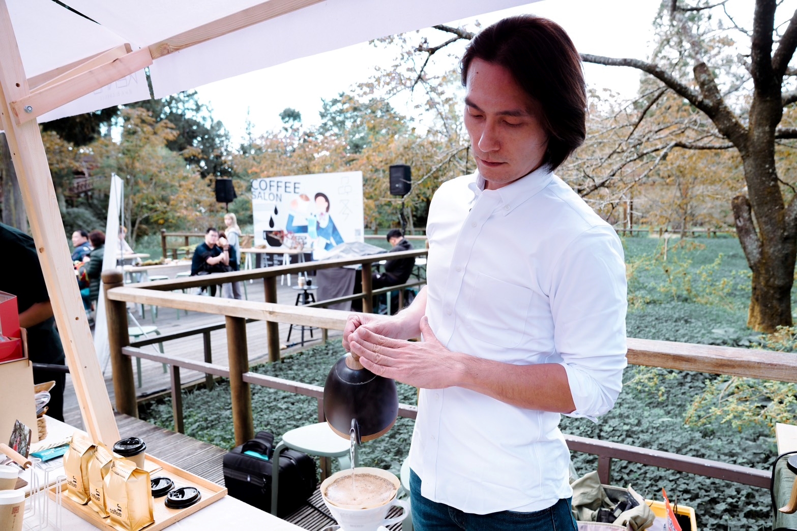 林業及自然保育署嘉義分署2024阿里山四季生活提案最終場「冬,森林咖啡沙龍」,今(9)日在阿里山國家森林遊樂區櫻王平台溫暖登場。本次活動以咖啡為主題,特別邀請咖啡達人MOJO Coffee的陳俞嘉,展示手沖咖啡的藝術,分享阿里山咖啡及各地區咖啡的特色風味;同時集結多家品牌咖啡攤位,包括飛鼠咖啡、熳珈琲等,透過3場論壇品嚐山林風味的咖啡與甜點,深入論述各品牌咖啡的風格與故事。一場別具韻味的盛宴,把浪漫的櫻王平台打造成瀰漫濃郁咖啡韻味的森林療癒空間,吸引上百位遊客參與感受阿里山咖啡獨特的醇香風味。