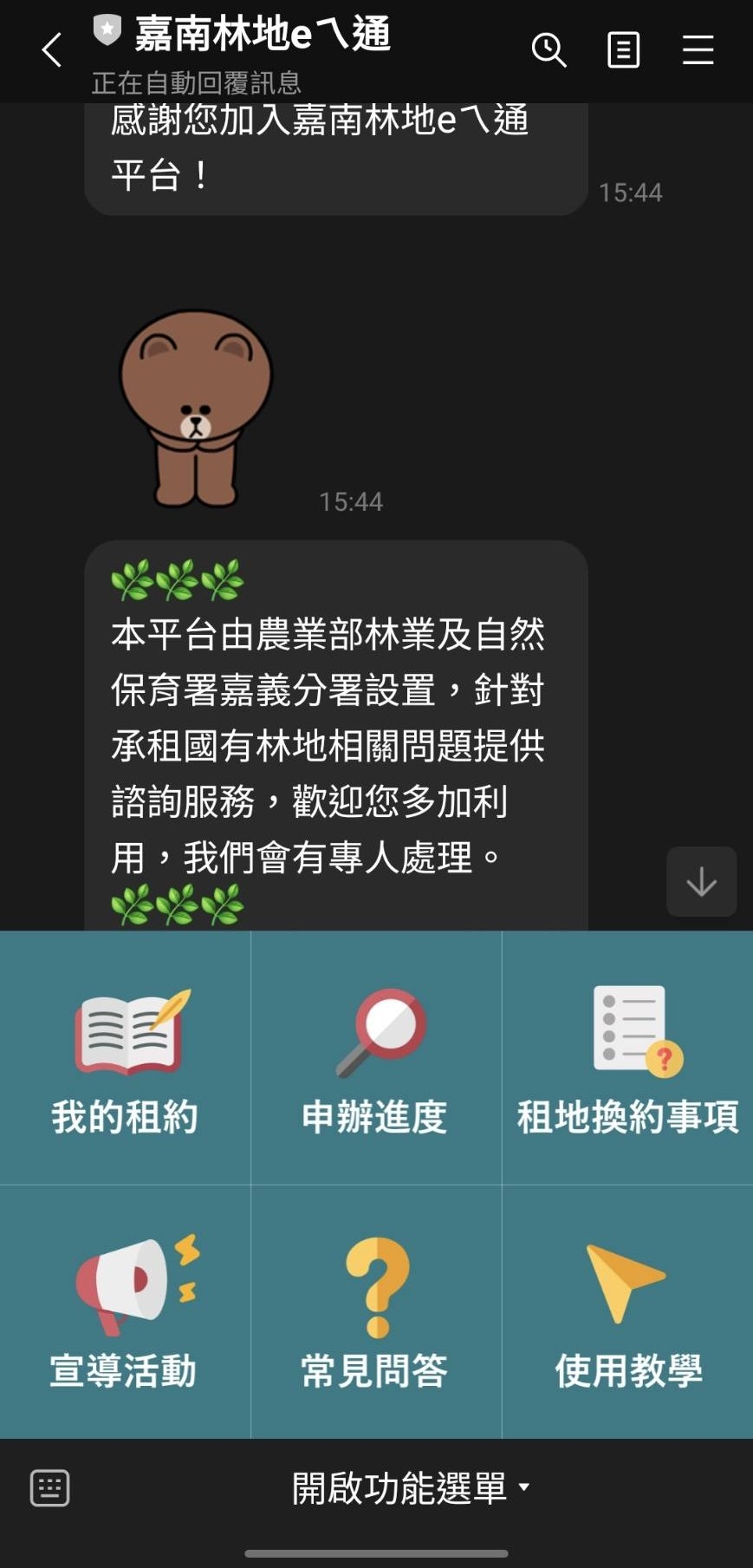 「LINE BOT」服務 林農輕鬆管理國有林地租約