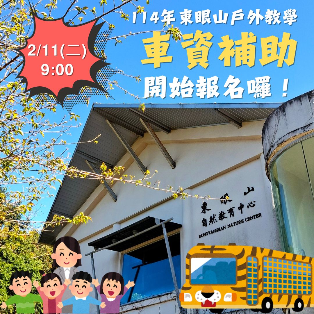 學校戶外教學好去處,東眼山自然教育中心114年度戶外教學車資補助即將開放申請!本次補助對象針對偏遠地區及前一年未參加過的學校優先錄取,申請期間將從114年2月11日(二)上午9點起至2月19日(三)下午5點止,報名期間如額滿將提前截止報名。 戶外教學車資補助目的在減輕學校活動經費負擔,讓更多學生有機會走入山林親近自然。歡迎有意帶領學生參與校外環境教育課程的國中小教師透過「台灣山林悠遊網」完成申請,詳情請參閱活動簡章! 東眼山自然教育中心長期致力於將自然資源與教育結合,培養學生的永續發展環境素養與觀念,針對不同學習對象與主題設計單日型與過夜型活動,為學生提供探索大地、深入體驗自然的教育機會。今年單日型課程主打「蟲林探險記:探索東眼山昆蟲的多樣性」、「國產材森活:探討國產材的惠益與價值」、「森林碳測術:解密森林碳匯的功能」;過夜型課程則主打「東眼奇兵:氣候變遷大挑戰」等環境教育課程方案,提供學校老師選擇。 今年共補助6梯次單日型課程與2梯次過夜型課程的車資費。單日型課程每梯次補助7,000元;過夜型課程每梯次補助10,000元,每校限申請1梯次(每梯次40人)。 歡迎想帶學生參與戶外教學的教師可前往「台灣山林悠遊網」申請報名,報名前資訊請詳參活動簡章(https://reurl.cc/M6Mx7K)。 如有課程活動相關問題,歡迎來電洽詢東眼山自然教育中心林小姐:03-3821533分機302。
