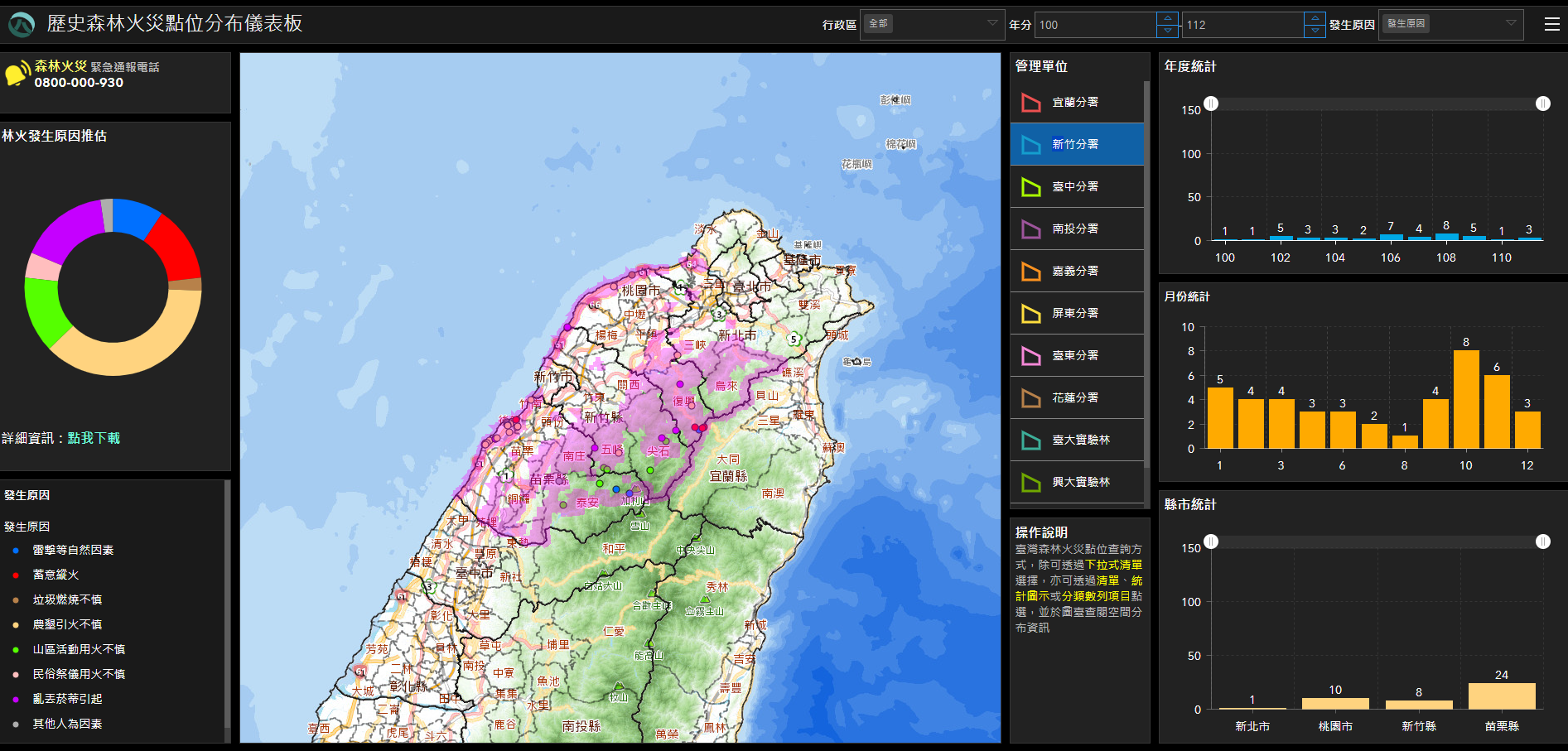 本(114)年1月25日至2月2日,適逢春節連續假期,近年來登山、露營等活動深受國人喜愛,為熱門休閒活動,林業及自然保育署新竹分署特別呼籲民眾,在享受山林野外休憩時,應提高警覺注意用火,避免一時疏忽,引發不可收拾的森林火災,造成生態浩劫。 林火發生與乾旱指數密切相關,林業及自然保育署已建立「林火風險評估系統」,運用資料同化技術整合衛星氣象及地面觀測資料,計算林火天氣指數(FWI)可得出 未來七天的林火潛在風險,系統圖台亦每日自動更新圖示,民眾可於網站(https://ffwi.forest.gov.tw/)查詢山區林火危險度,除了提醒民眾謹慎用火,民眾也可開啟手機定位、查看所在地林火危險度狀況,避免林火發生。 在森林進行山域活動,隨意撿拾枯枝落葉燃燒,取暖、烹煮食物等,可能引發森林火災。依森林法第34條規定,違反該行為應裁處新台幣12萬元以上罰鍰,而為防範森林火災,新竹分署除透過各種管道積極向民眾宣導外,另外對違反此項規定者,113年度已開出3張裁處書,裁罰金額最低12萬元起跳,在此呼籲民眾應嚴格遵守相關規定,以免荷包大失血。 進入農曆春節連續假期前夕,新竹分署特別呼籲謹守防火3「不」原則,即「不」燃燒雜草、「不」亂丟菸蒂、「不」燃放爆竹,共同防範森林火災,一起維護森林資源。如發現森林火災時,請儘速撥打免費專線電話0800-000930、0800-057930或119消防中心通報。另外舉發燒毀國、公有林查獲犯罪行為人者,將致贈舉發人10萬元以下獎金。