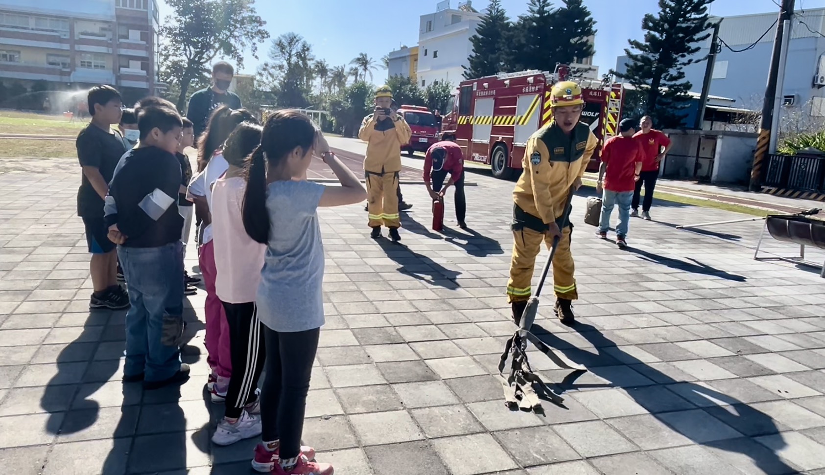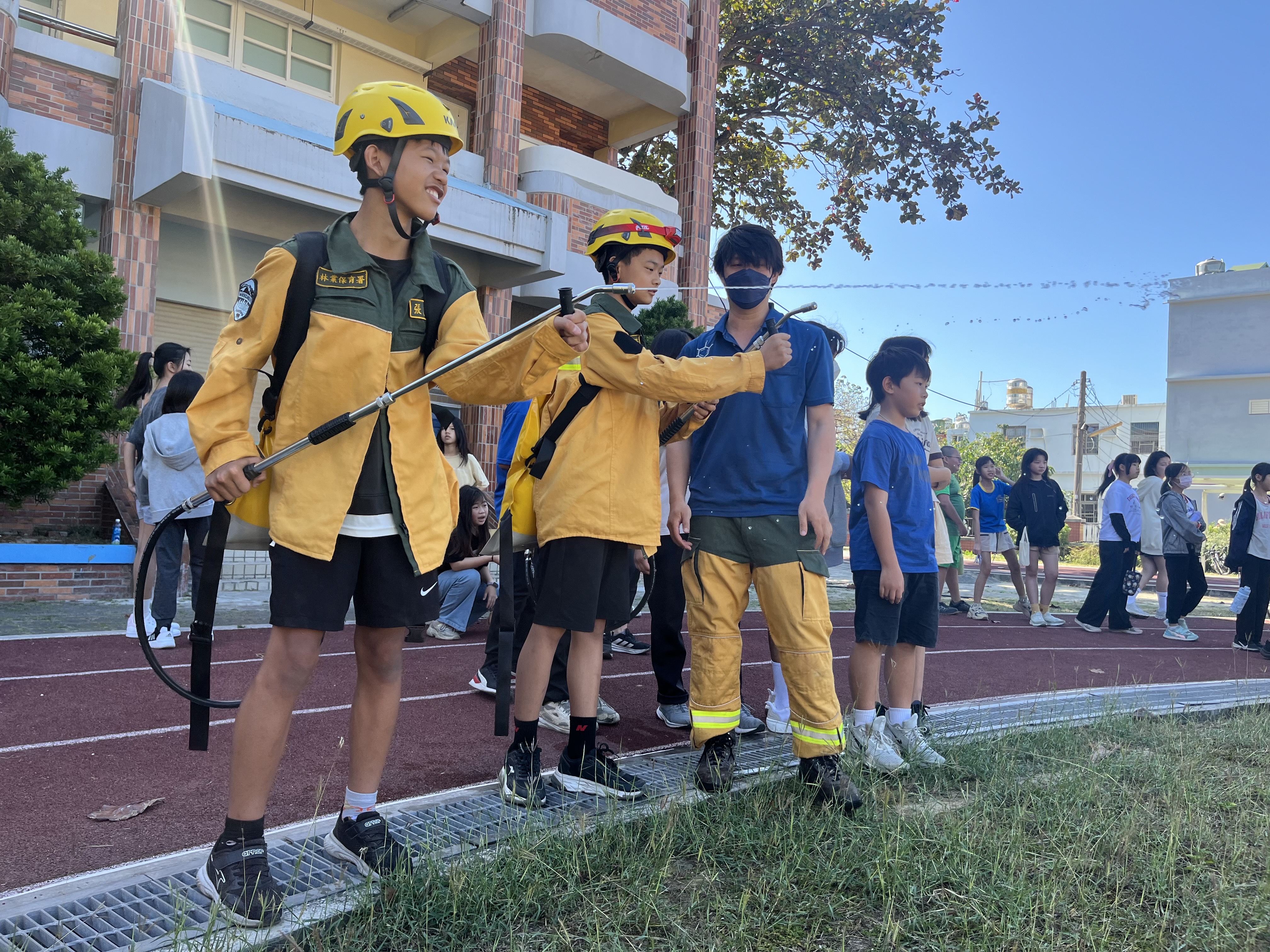 林業保育署屏東分署與屏東消防局琉球分隊在白沙國小設置五大關卡,透過「玩中學、學中做」,讓學童掌握實用防災技能。課程涵蓋保安林與防火觀念、消防水袋與滅火器操作、濃煙逃生體驗,以及背負式水帶與工具滅火訓練,提升森林火災應變能力。透過實作演練,學童不僅學會滅火,更培養自救與應變能力,確保未來面對災害時能冷靜應對、安全避難。