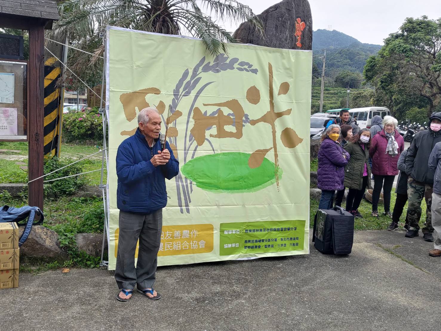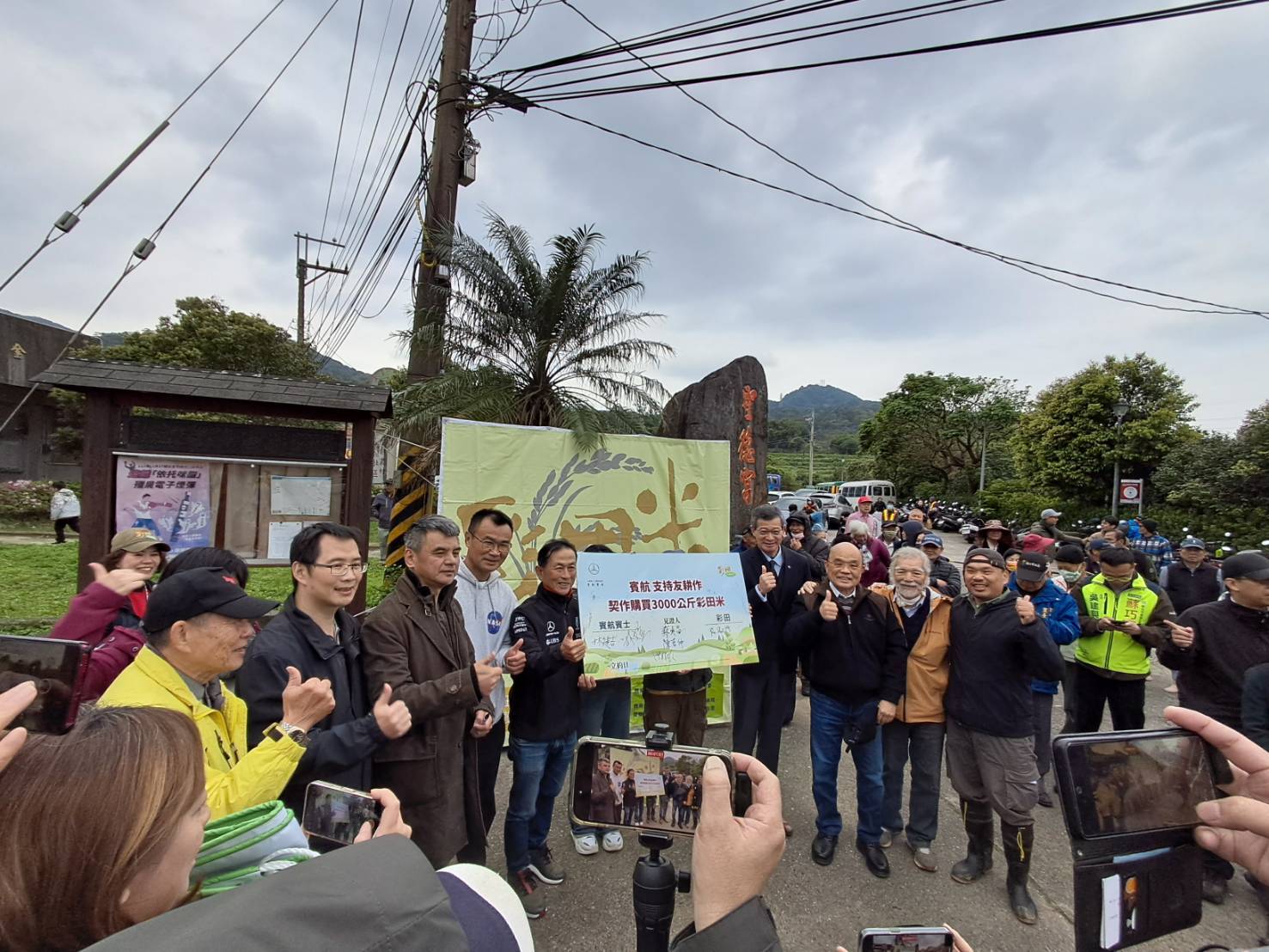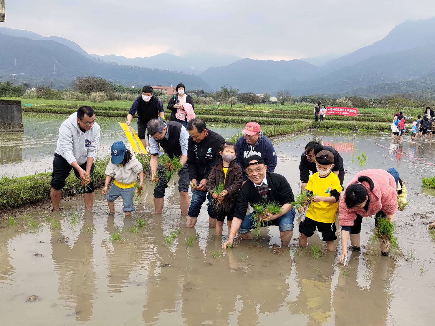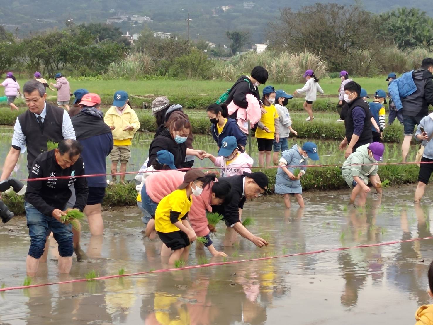 林業及自然保育署宜蘭分署為建構國土生態保育綠色網路,串聯北海岸淺山動物通行廊道,在新北市金山地區推動友善耕作,尋求在地永續經營模式兼顧當地生態環境,委託「台灣農民組合協會」於今(19)日在新北市金山區三福宮廣場辦理「114年金山彩田春季插秧」活動,邀請前行政院院長蘇貞昌、前農業部部長陳吉仲及三和國小、中角國小、大鵬國小、金山國小、金美國小、野柳國小6所鄰近國小學童、合作友善耕作農友們及參與地方協作的企業八方雲集、賓航賓士及原森旅行社等,300人共同參與插秧活動。活動開場賓航賓士與台灣農民組合協會簽署契作購買3,000公斤彩田米,以實際行動支持友善農作。眾人依循傳統耕作時節春分由耆老帶領進行的敬天謝地儀式,期許上蒼自然惠予來年豐收。敬天謝地儀式後不分老幼一起赤腳踏入泥土裡體驗水稻插秧活動,活動依循食農教育精神透過在地體驗種植水稻,學習米食文化,並可降低食物里程,實現地產地消精神,播下一顆友善環境的種子。插秧後安排品嘗米食製品,享受前人營造生態環境下甜美的果實,傳達生態保育觀念。