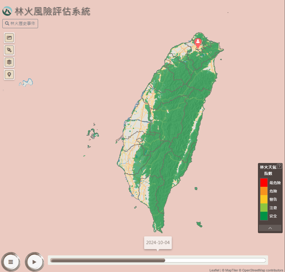 根據統計,臺灣每年10月至翌年4月為森林火災高發期,近五年內共發生254起森林火災,其中3、4月就佔了45%,大多與人為用火不慎有關。民眾可透過林業保育署「林火風險評估系統」查詢林地火災潛在風險,避免不必要的焚燒行為,以降低火災發生機率。