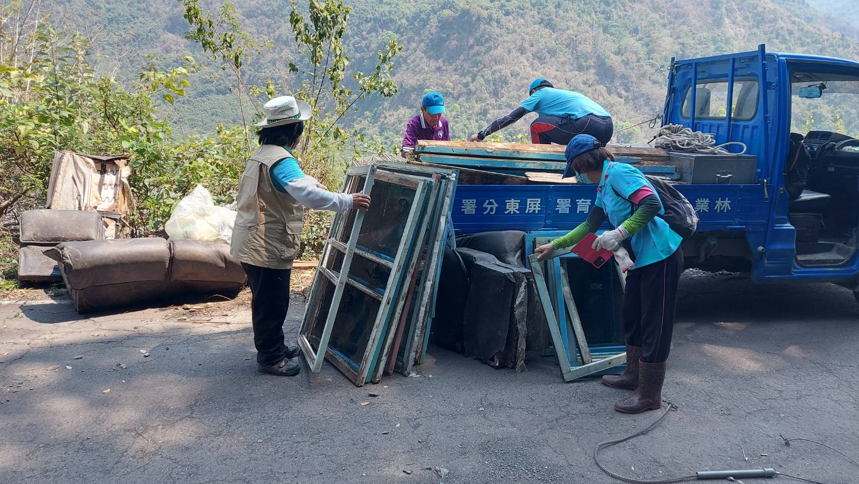 林業及自然保育署屏東分署森林護管員近期在巡護過程中,發現森林內遭人棄置大量廢棄家具及垃圾,嚴重影響森林環境與生態平衡。為維護森林潔淨,森林護管員攜手國家森林監測志工共同進行清除森林非法廢棄物的行動,歷經數小時的努力,合力移除約400公斤,讓森林恢復原貌。