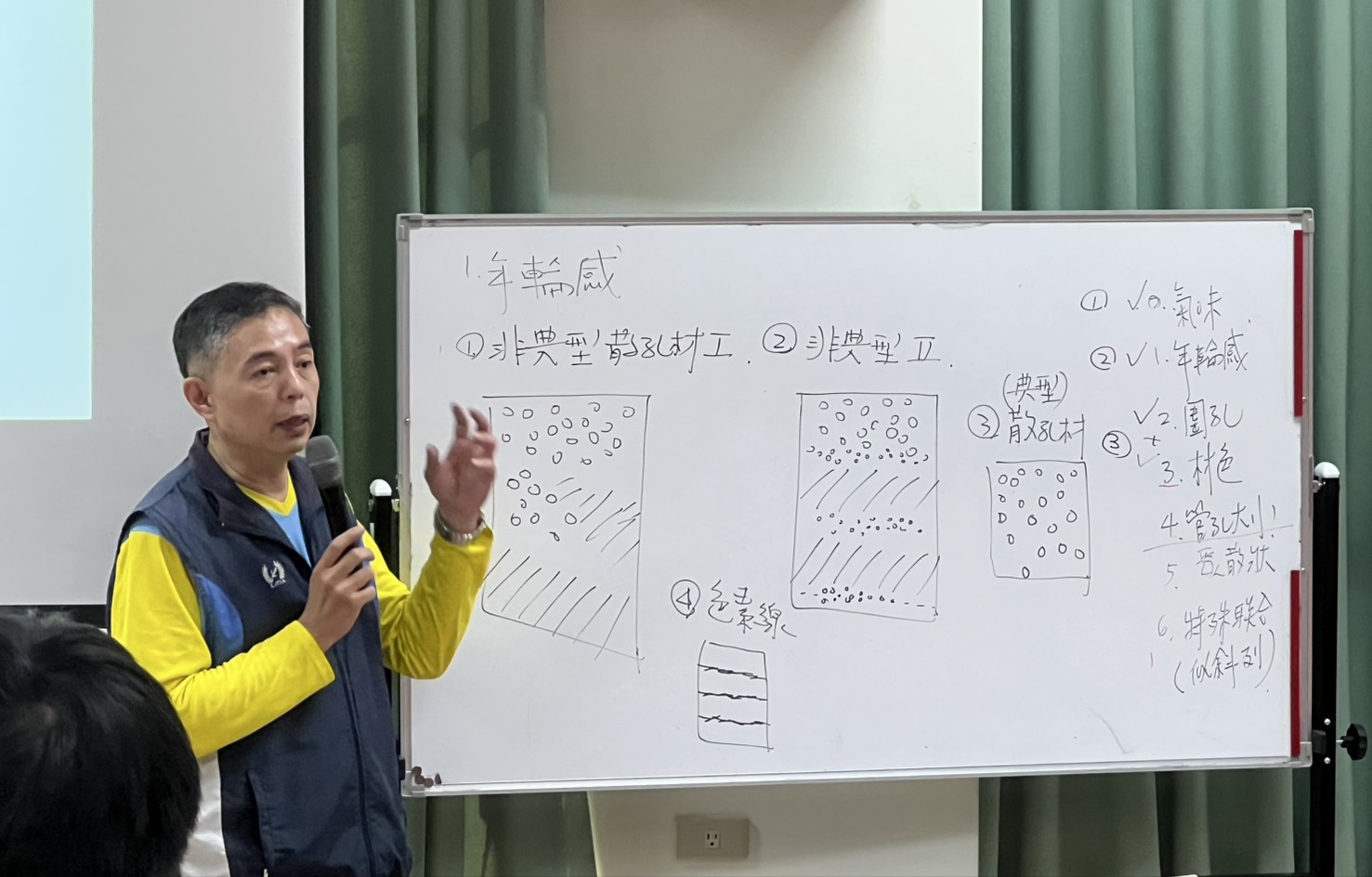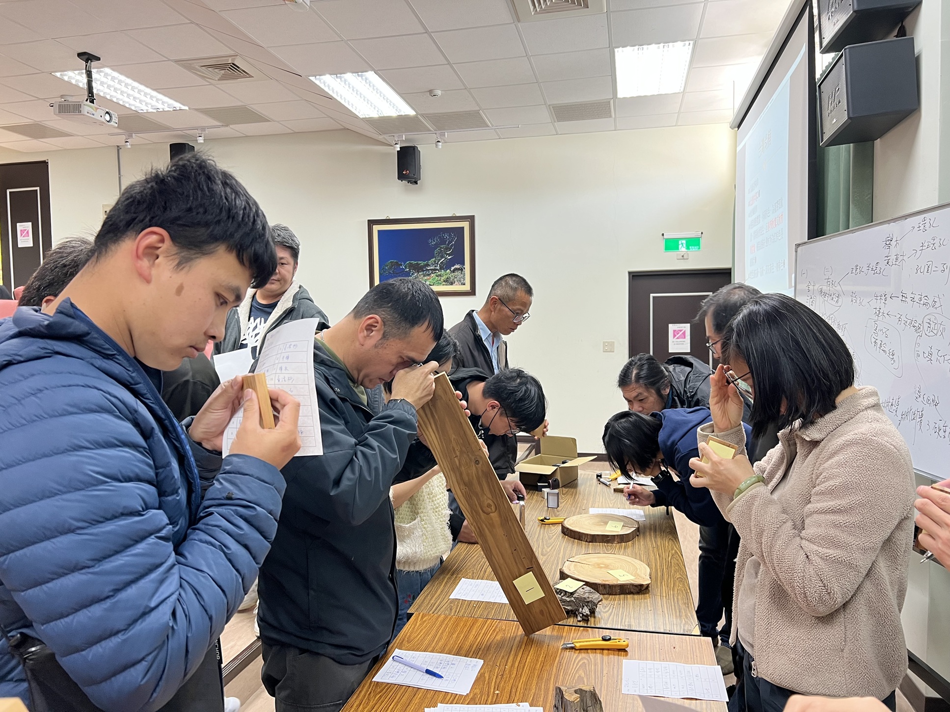 林業保育署臺中分署進一步指出,漂流木與商用木材不同,無法在研究室以試片解剖放大觀察型態,若單以木材香味辨識,常因漂流木多為濕材造成味道誤差,且容易有嗅覺疲勞造成辨識錯誤,所以現場人員常會採取木材幹部樣本,增加樹種辨識正確率。課程中以各種木材樣本進行實務操作,觀察有無管胞及排列形狀,再依據重量、材色、氣味、切削感、肉眼及放大鏡可見之木材組織進行辨識。透過講師手把手、按照步驟的教學,學員們都表示非常受用,增加對於辨識木材的基礎技能。