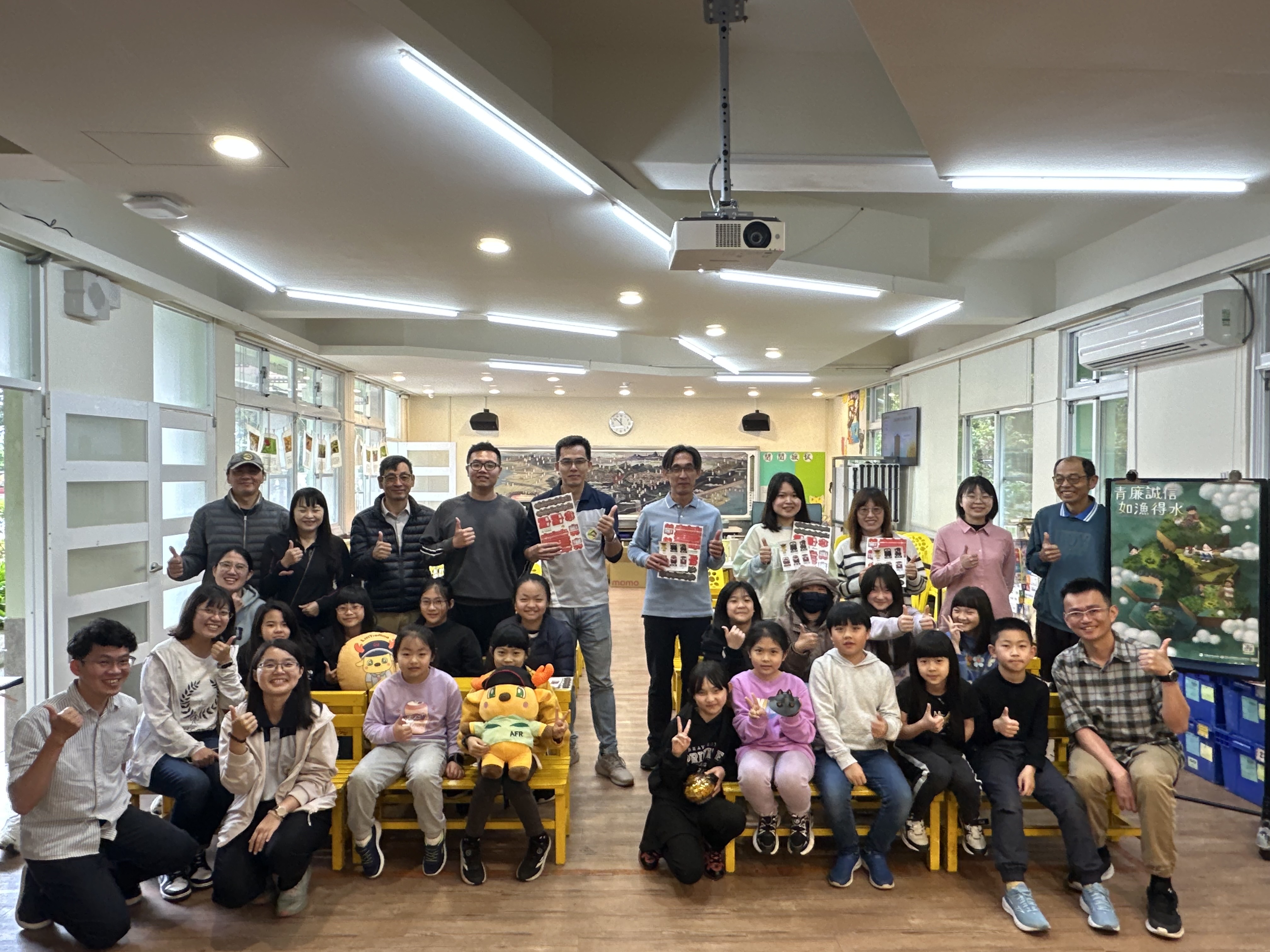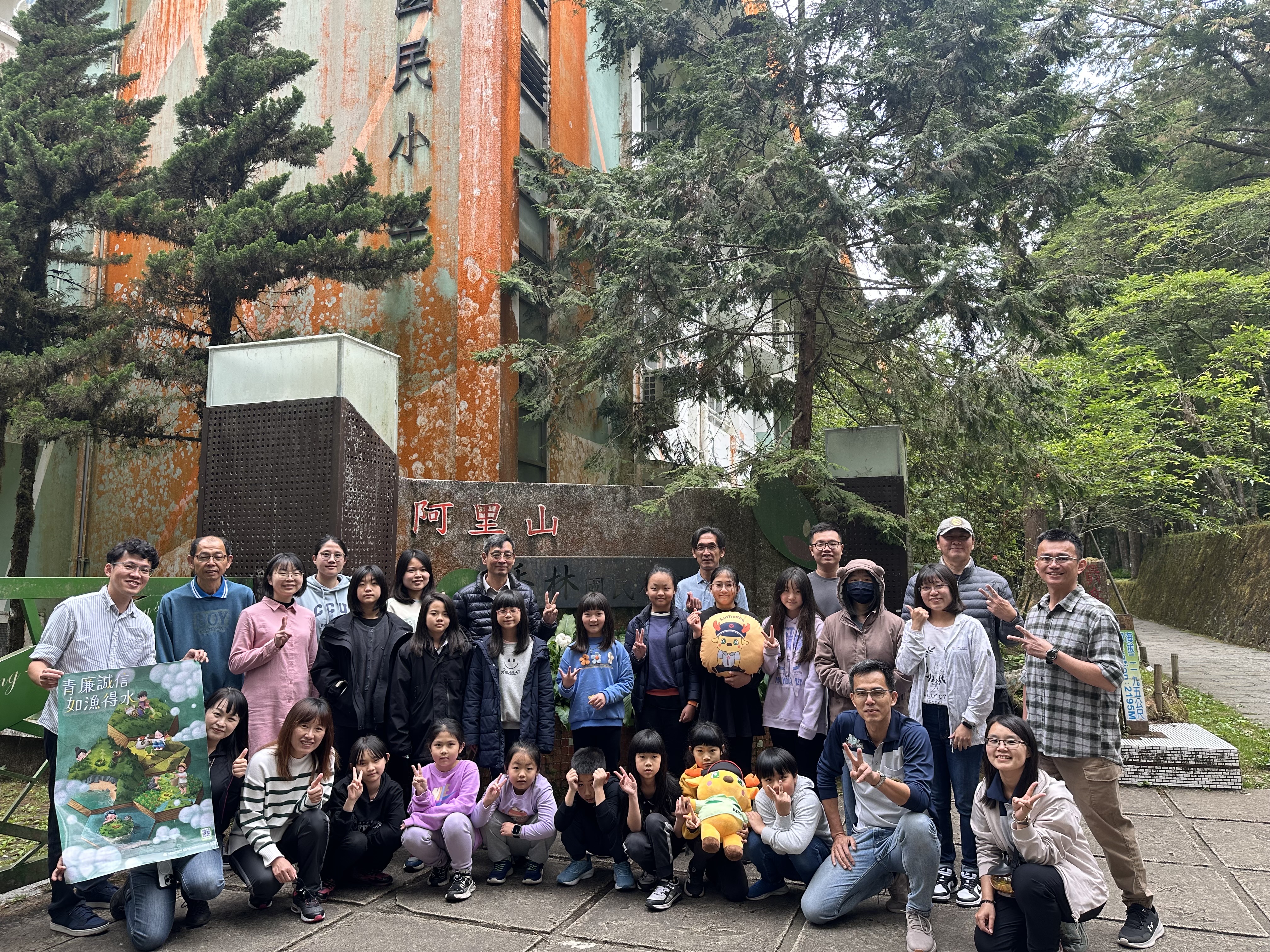 阿里山林業鐵路及文化資產管理處(林鐵及文資處)5月15日上午前往海拔2,195公尺之阿里山香林國小,辦理「青廉誠信 如漁得水之廉政扎根品德教育活動」,結合培育廉潔幼苗、鐵路行車安全、愛護森林、保護動物及重視保育愛家園等內容,以說故事的方式,向在場學童宣導,並穿插有獎徵答增加活動趣味性,輕鬆學習新知及建立清廉誠信的觀念。 香林國小位於阿里山國家森林遊樂區內,有最高學府之稱,全校學生僅有17人,林鐵及文資處特別在「香林神木」下辦理這場活動。活動於上午11時開始,政風室黃俊澤主任首先說明廉政誠信之重要性,接續由廉政志工以「阿里山森林模範代表」故事做為主題,介紹臺灣獼猴、黃喉貂、冠羽畫眉、長鬃山羊、山豬、帝雉、山椒魚及條紋松鼠等動物,以及阿里山地區植物、風景、林業文化等,透過動物競選模範代表的過程,引導學童認知應有的品德及守法素養,並思考「行政透明」、「反貪腐」與「廉政誠信」,培養廉潔意識。 活動1小時的時間,林鐵及文資處以輕鬆活潑的動態演出方式,適時與現場學童互動,並以有獎問答方式加強學童學習印象及參與感,大人小孩都樂在其中,圓滿完成品格教育與生態保育共學之旅。