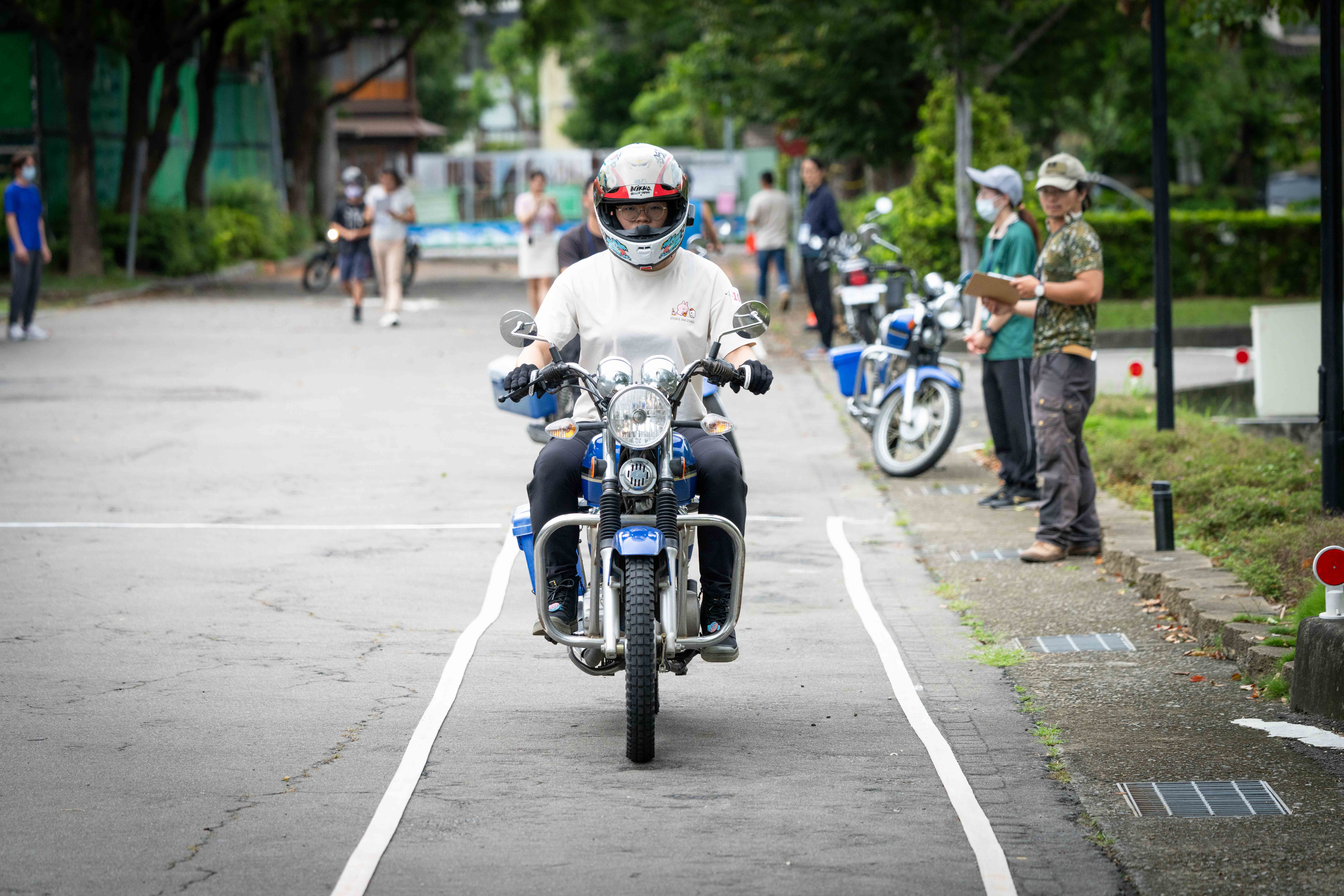 14日進行的術科測驗項目包含騎乘循環檔重型機車及負重20公斤跑走1,500公尺,藉以測試應試者基本巡護所需具備的技能及體能。負重跑走男性及格門檻為12分鐘,女性則為13分鐘30秒。通過術科測驗者始取得下午之筆試測驗資格。筆試科目包括作文及森林及自然保育相關專業科目,口試則著重儀態表達、應變能力及工作適應性等綜合評估,藉以選拔出優秀護管員。