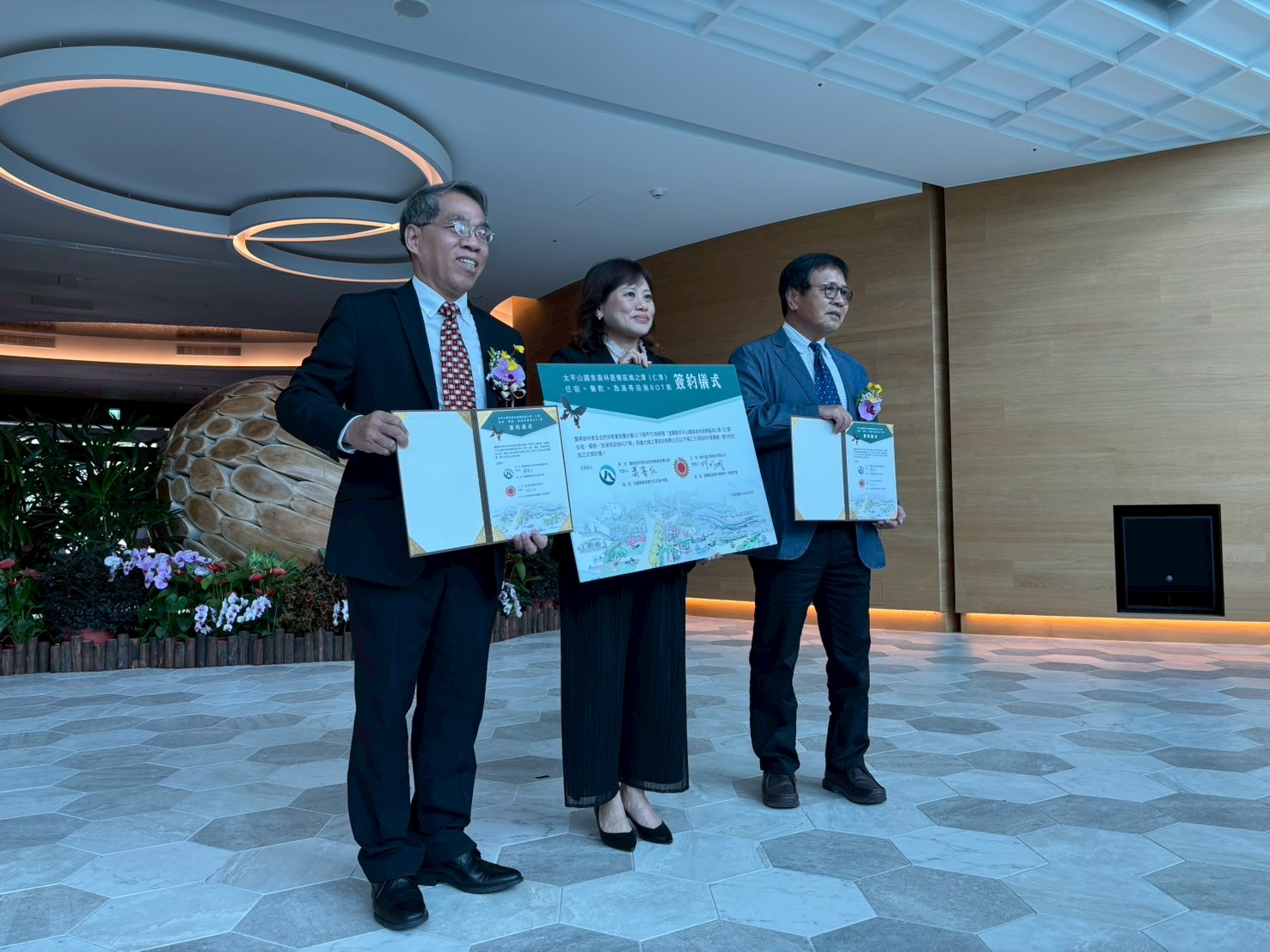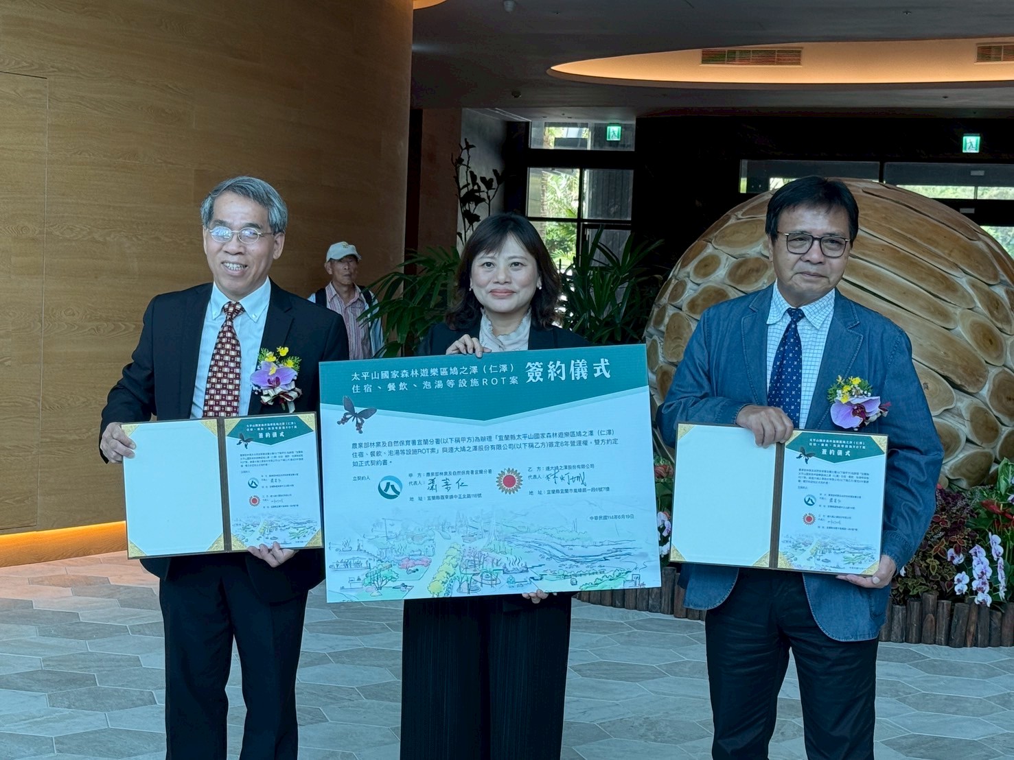林業及自然保育署宜蘭分署為推動山林永續與觀光產業共榮,完成太平山國家森林遊樂區的鳩之澤溫泉據點修建營運移轉(ROT)案,甄審結果由宜蘭在地老字號企業連大建設股份有限公司取得最優申請廠商,將投入3,589萬元進行設施升級與創新經營,打造從太平山連結太平洋的「蘭陽山海生態之旅」觀光廊道。本案除強化交通接駁、食宿服務、新設電動車充電設施及免費泡腳區外,更串聯大同鄉泰雅部落文化、林下經濟及地方農產,提升旅遊品質並促進地方就業,開創臺灣山林旅遊與在地共榮之永續觀光典範。 本次ROT案範圍為鳩之澤溫泉據點內的本館、溫泉SPA區、溫泉湯屋、溫泉裸湯區、煮蛋槽及溫泉管線等設施,由連大公司取得八年經營權,合約期滿並評鑑優良可續約七年。該公司為深耕宜蘭多年的建設與旅宿開發業者,擁有豐富的促參BOT案經驗,其中與漁業署合作的凱渡廣場酒店及OA Hotel,深獲好評。未來該公司將於鳩之澤投入超過3,589萬元之修建金額,針對交通、設施與整體空間全面升級,期盼藉此打造一處具備食、宿、遊、購、行五大功能的多元溫泉旅遊場域。 此案特別融合「從太平山玩到太平洋」的生態觀光構想,連大公司透過增設交通接駁車,連結太平山國家森林遊樂區與宜蘭沿海景點,如頭城鎮的龜山島與烏石港,途經大同鄉泰雅部落,形成具生態與文化深度的「蘭陽山海生態之旅」套裝行程,未來遊客可一日暢遊山林與海洋,感受宜蘭獨特的自然美景與文化風情。 為落實在地共榮理念,連大公司將優先聘用大同鄉泰雅族部落居民及當地人才,促進部落青年參與餐飲、住宿與旅宿經營,打造從農特產供應鏈到服務端的部落合作模式。承諾聘用宜蘭人力比例由原規定三成提高至七成以上,強化地方就業連結。同時也將與地方農會及小農合作,採購特色農產,豐富遊客飲食體驗並支持在地經濟。 鳩之澤本館裝修工程及未來營運賣店將主打使用臺灣國產木材,傳達林業文化價值,並創造舒適自然的木質空間氛圍,融合森林療癒與環境教育。此外,將新增免費溫泉泡腳區與電動車充電樁,完善友善設施;三星鄉及大同鄉居民亦享有泡湯優惠,以實踐企業社會責任與社區回饋。連大公司亦承諾每年提撥新臺幣100萬元回饋金予大同鄉公所,以促進地方公共建設與福祉。 本案簽約儀式於114年6月19日(四)上午10點於凱渡廣場酒店舉行,參加貴賓有林業及自然保育署汪昭華處長、林業及自然保育署宜蘭分署蕭崇仁分署長、連大建設股份有限公司林燈城董事長、連大鳩之澤股份有限公司林家漢執行長、宜蘭縣政府王明輝參議、陳俊宇立委服務處曾俊豪主任、大同鄉公所陳成功秘書等人皆出席簽約儀式,象徵公私協力、生態旅遊新局的正式啟動。預計於7月底前完成設施點交、8月正式移轉經營權,進入為期六個月的修建期。期間,連大公司將秉持營運不中斷的原則,維持煮蛋槽等主要設施正常營運,各項泡湯設於整修後立即提供遊客使用,讓遊客持續能體驗溫泉旅遊。而簽約儀式當日,宜蘭分署也在凱渡廣場酒店一樓的文創商品部上架山林製造品牌的新櫃位,讓未來參加山海之旅的遊客,也能購得特別的紀念品,增添遊程美好的體驗。 林業保育署宜蘭分署強調,此案為宜蘭生態旅遊多元發展的重要里程碑。在鳩之澤溫泉據點以外之場域,宜蘭分署將持續肩負山林保育、環境教育與生態維護職責。未來,期望透過公私協力推動部落林下經濟與生態旅遊升級,實踐「山海共遊、環境共生、在地共榮、全球共感、永續共贏」的核心願景,引領宜蘭邁向永續生態旅遊新未來。