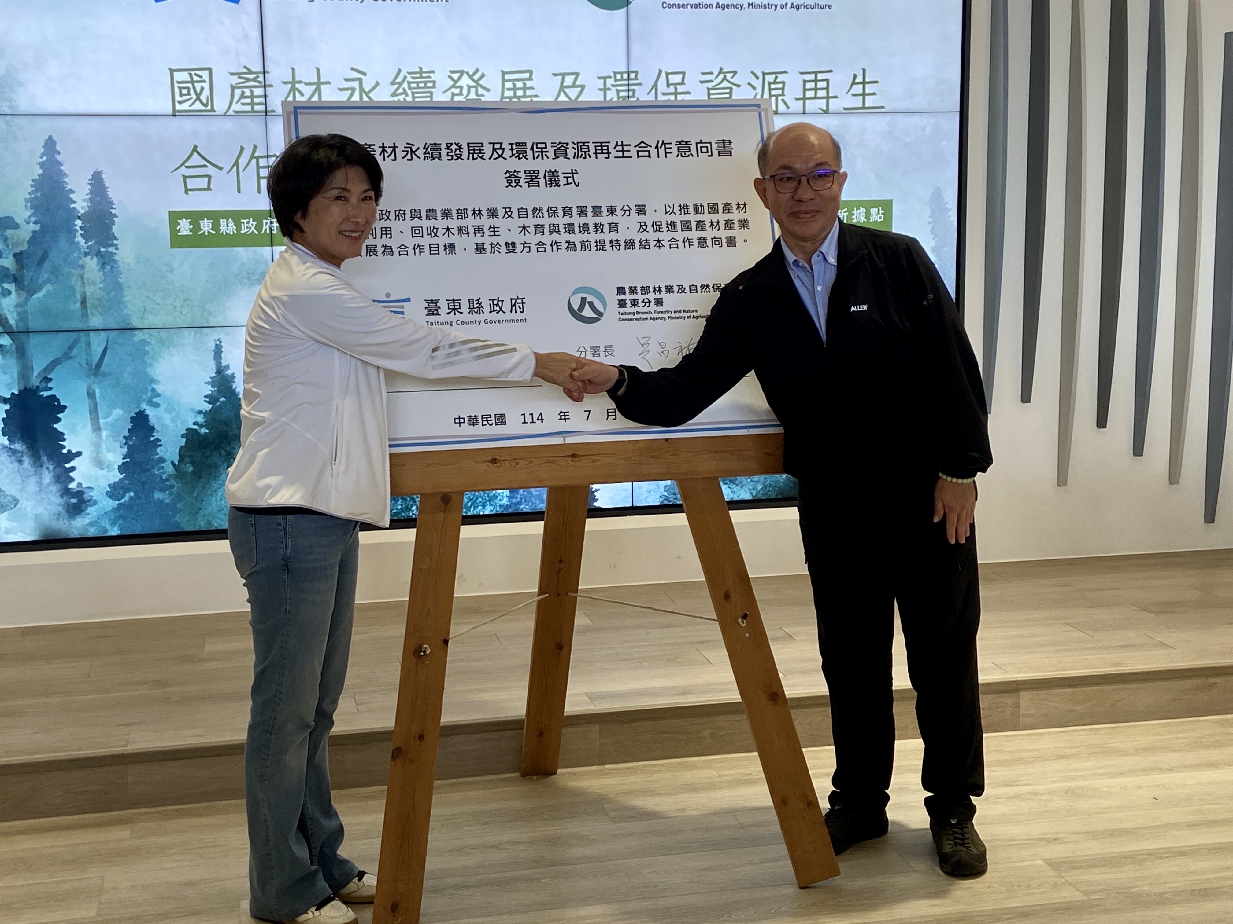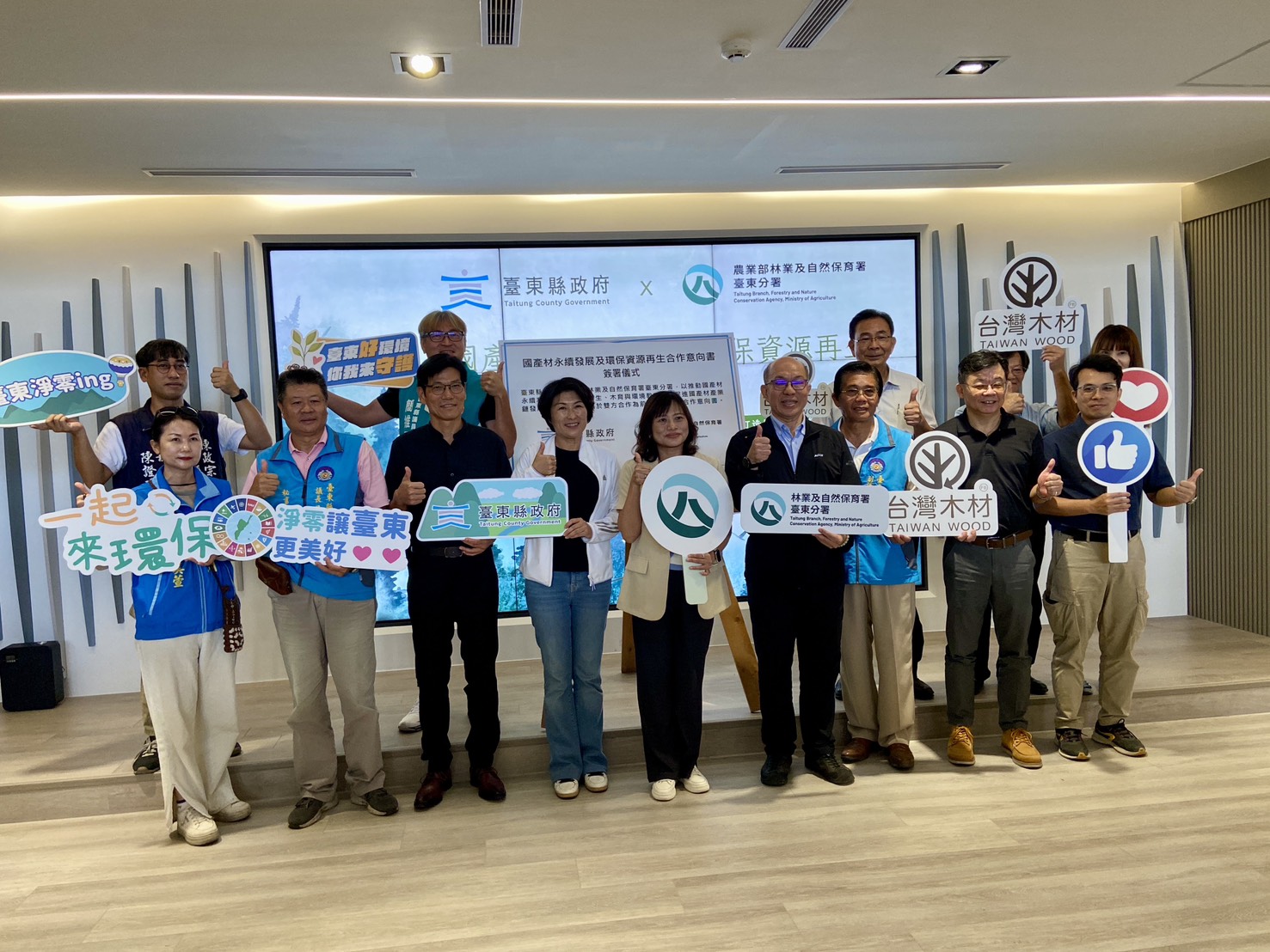 為深化臺東「慢經濟」的在地價值,臺東縣政府與農業部林業及自然保育署臺東分署今(15)日於臺東縣環保局三樓大禮堂簽署合作意向書(MOU),共同啟動「國產材永續發展基地」計畫。雙方將攜手活化臺東縣環保局管理的巨大廢棄物再利用中心,首度整合空間活化、資源永續及產銷串連,推動在地產業升級與資源循環,作為中央及地方政府合作示範,共同為臺東開拓出不一樣的風貌。 饒慶鈴縣長表示,臺東以「慢經濟」為核心,積極結合地方特色與綠色永續行動,長期致力於推動巨大廢棄物多元再利用及資源再生系統,提升資源回收效率與廢棄物妥善處理率,減少垃圾處理成本,展現對環境永續管理的堅定承諾。此外,透過環保局與林業保育署的積極參與與協力推動,未來將共同以「強化產銷、建構直販、推動教育、紮根循環、呼應慢活」五大目標,期待打造符合聯合國永續發展目標(SDGs)的示範基地,為臺東綠色產業注入新活水,引領城市持續邁向永續轉型。 林業及自然保育署臺東分署長吳昌祐指出,此次「國產材永續發展基地」計畫將打造「臺東國產材微型產銷平台」,提供建材、家具、工藝品等多元國產材板材及產品,以提升在地供應能量,同時扶植微型產業與工藝設計應用,落實「全材永續利用」的產業目標。這是國產材產業從資源管理走向產銷整合的重要里程碑,也感謝縣府長期支持跨機關合作,促成空間重生與產業重構。 臺東縣環保局表示,未來會積極媒合巨大廢棄物再造再利用,此外基地除推動國產材產業,亦將發展為木育體驗與環境教育中心,辦理專業師資培訓、親子活動及主題課程,讓民眾透過實作學習森林資源珍貴與再利用的重要性。透過活化巨大廢棄物再利用中心,賦予回收木料新生命,實現「環境保護工作企業化經營」的目標,落實資源循環與空間再生,展現臺東綠色轉型的具體行動力。 面對氣候變遷與資源有限的挑戰,期盼透過這次合作打造的國產材永續發展新據點,可以連結更多民眾與產業共同參與資源循環及永續行動,一起為臺東打造宜居永續的美好家園。