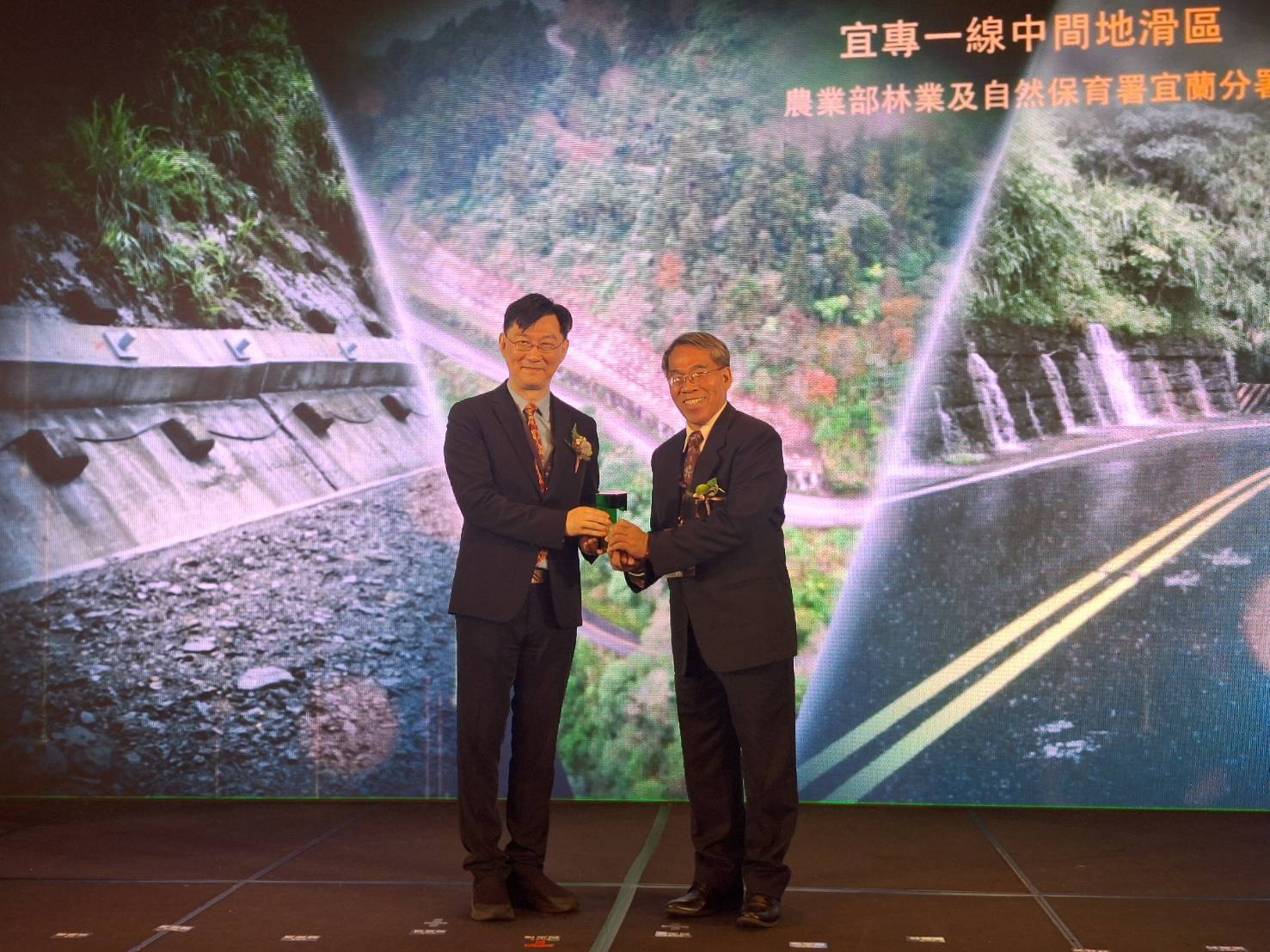 2025國家卓越建設獎於114年7月29日盛大舉行頒獎典禮,農業部林業及自然保育署宜蘭分署所主辦「宜專一線中間地滑區」榮獲2025國家卓越建設獎最佳管理維護類「特別獎」殊榮。 太平山國家森林遊樂區的中間服務站南側,於民國94年發生地滑災害,造成道路中斷並休園長達9個月之久,在此之後,宜蘭分署經一系列監測調查,擬定治理計畫,並自民國95年起於地滑區內,設置以導排地下水為主的 3座大口徑集水井(直徑3.5公尺、深度 40公尺,約12層樓的深度),並以一系列地錨擋土設施,維護中間地滑區之安全。 宜蘭分署透過在中間地滑區的長期監測,進行治理成效追蹤,同時進行「宜專一線維護管理計畫」的訂定,並落實「中間地滑區邊坡治理設施管理及維護程序手冊」的執行,針對各類主體工程(如面版地錨、大口徑集水井、坡面排水管等)建立系統性的制度化維護,達到公共設施永續使用的目標。在維護期間,亦落實「林業保育署公共工程生態友善機制手冊」,以降低維護過程對於生態環境的影響。 宜專一線中間地滑區已建立自動化監測系統,包括CCD即時影像、BIM技術、LiDAR、UAV及虛擬實境等技術,建立起以科技為底蘊,並兼具永續、低碳、節能、生態為本的維護模式,期能以此推廣至其他的公共設施維護管理作為上,以符合林業及自然保育署『永續林業-生態臺灣』的政策目標,並帶給進入太平山國家森林遊樂區的遊客更安全的旅遊環境。