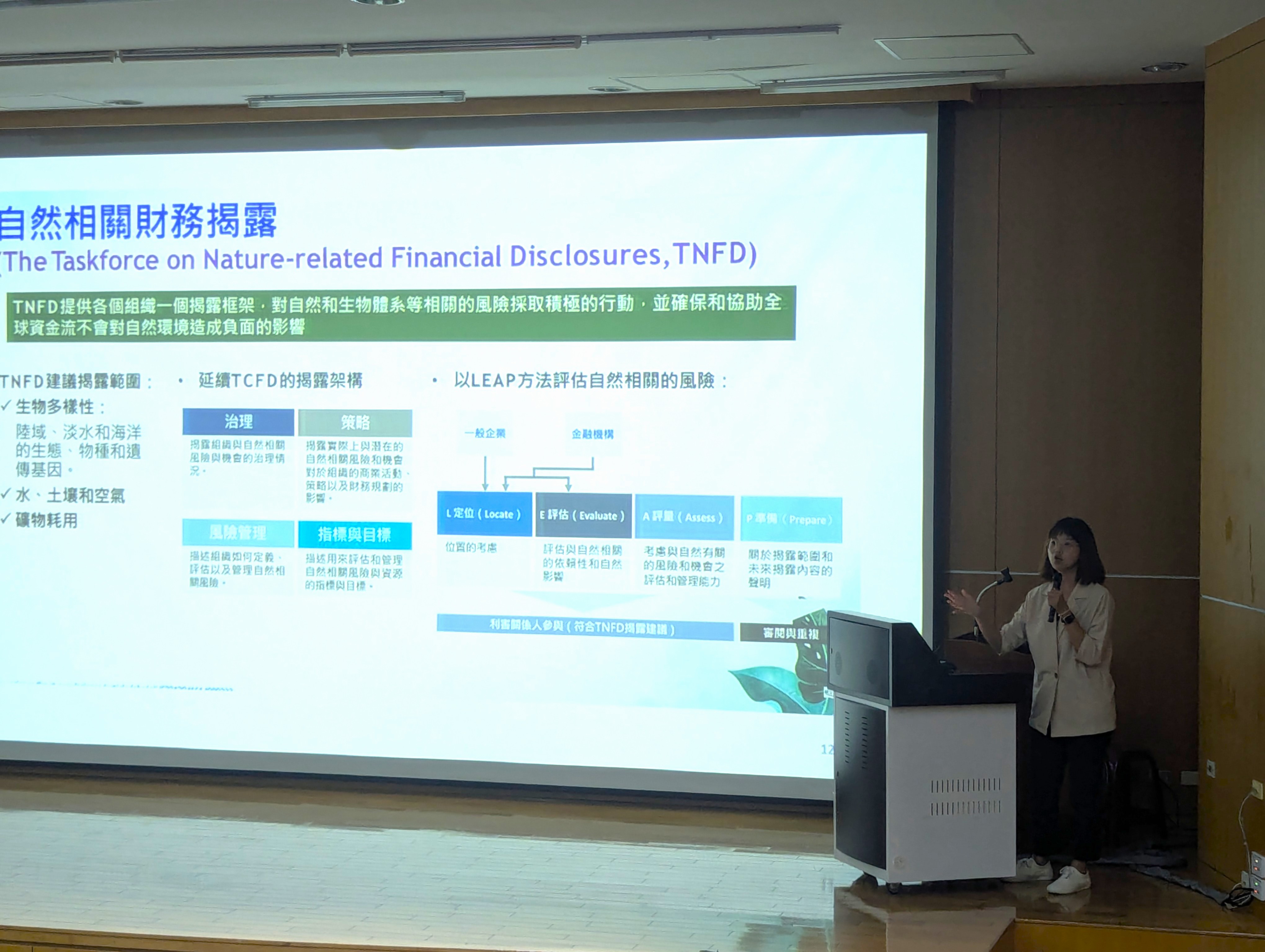 這次說明會由林業保育署嘉義分署主辦,會中透過該分署自然保育科科長許玉青主講「自然相關財務揭露(TNFD)國際重要性與ESG實踐案例」,深度解析企業如何藉由TNFD來識別自然風險、把握永續商機,並滿足國際供應鏈對環境責任的要求。TNFD的導入能將自然風險量化,有助於企業將其納入決策,進而提升韌性與永續治理能力。同時,該分署專員張雯婷也介紹了「自然碳匯與生物多樣性專案媒合平臺」,鼓勵企業透過跨域合作來推動保育與綠色轉型。嘉義分署表示,希望藉由此次說明會,深化產業對TNFD的理解與應用,同時推廣「自然碳匯與生物多樣性專案媒合平臺」,並強調TNFD是企業落實ESG的重要工具,兩者結合不僅能增強永續治理、提升國際競爭力,也能贏得投資人的信任,最終實現環境與經濟的共贏。