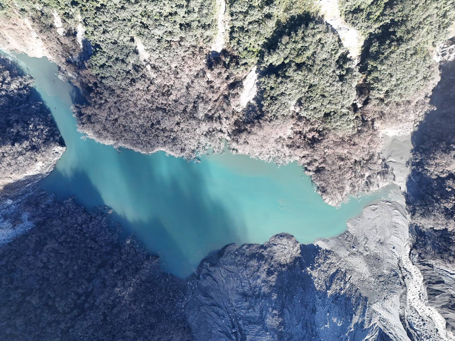 一、今(29)日7時50分上午馬太鞍溪堰塞湖水位1021.5公尺,面積約13公頃,蓄水量610萬噸,與原最高水位相較目前水位已下降118m(以上數據係以無人機觀測),蓄水量持續減少,壩體及水流無異狀,因溢流口水道兩側仍不穩定,加以先前集水區降雨仍有水量持續匯入湖區,因此目前仍維持紅色警戒。