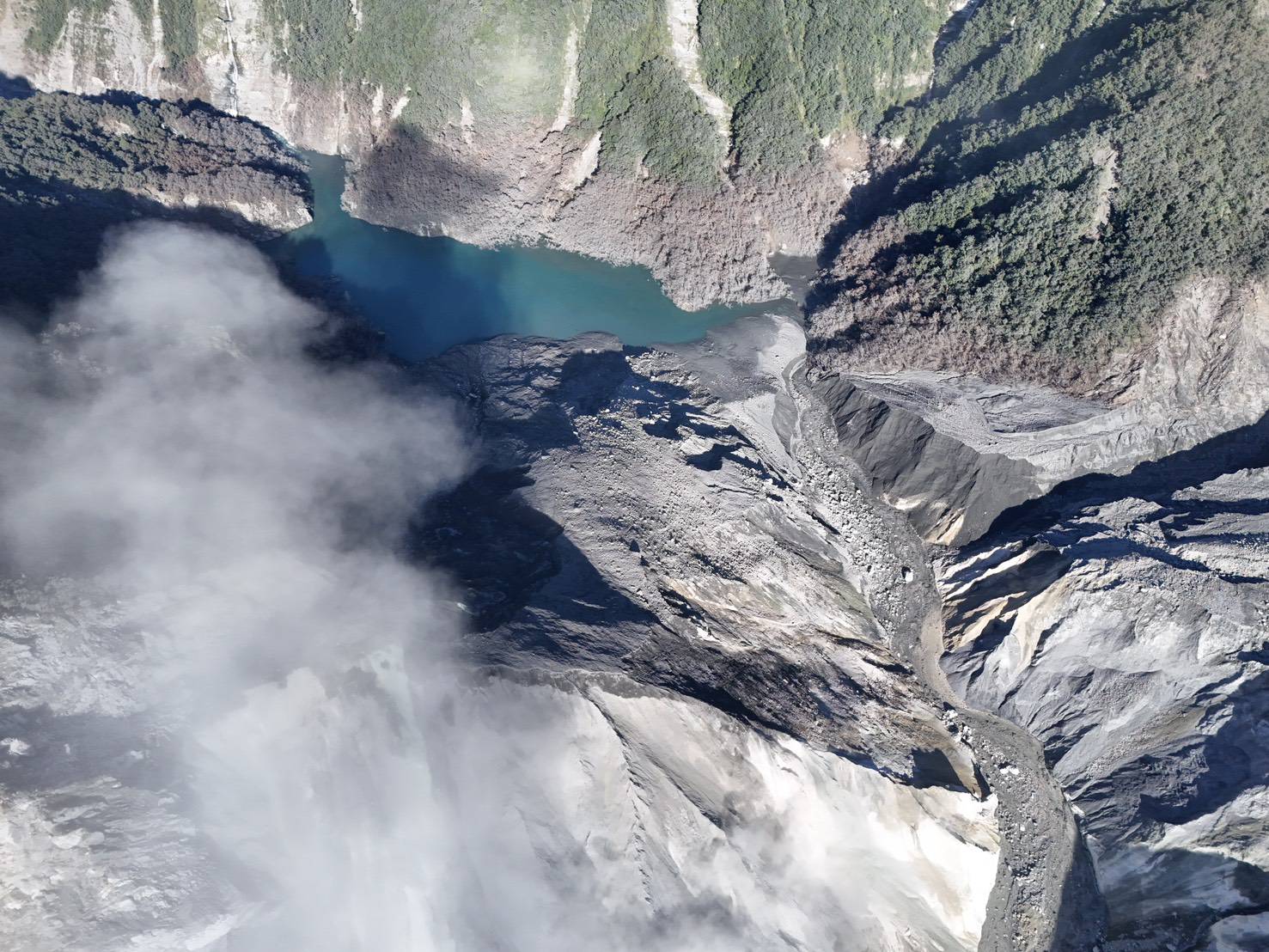 1140929觀測堰塞湖壩體狀況,現場初步判斷壩體及水流無異常。