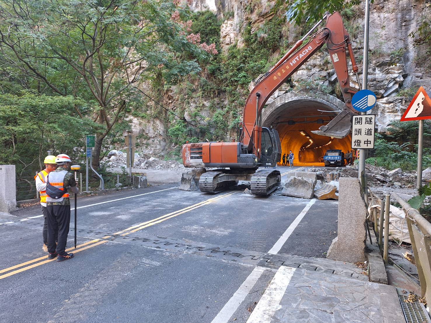 林業及自然保育署花蓮分署今(18)日表示,太魯閣國家公園燕子口一帶因大規模崩塌形成的堰塞湖,經持續監測,目前湖水已從台8線靳珩隧道東口溢流,並穩定回流至立霧溪主河道,雖水量略增,但整體流勢平穩,堰塞湖對於下游風險已降低。 根據公路局東區養護工程分局CCTV影像顯示,今日凌晨02時30分左右,堰塞湖水開始漫淹至台8線靳珩隧道西口路面,隨後湖水經西口沿隧道向東漫流,溢流水出了隧道出口後立即從到道路兩側流回立霧溪河道。現場觀察顯示,水流穩定,未對下游造成重大威脅。 為即時掌握現場情勢與堰塞湖變化,今日上午7時,已由林業保育署會同廠商進入現場勘查,隨即展開便道開設作業,預計從新台8線開設約30公尺便道銜接舊台8線,以抵達壩體邊進行後續降挖及安全評估。 此外,昨日請陽明交大初步評估,假設堰塞湖1小時內潰決,潰決後約50分鐘水流抵達下游錦文橋(河寬約100公尺),河床水位抬升5公尺,過錦文橋後因河道擴寬,水位上升量約2公尺。因下游右岸富世村民樂部落高於河床10公尺,左岸的台灣電力公司東部發電廠立霧機組高於河床5公尺,應不會發生影響,但為慎重,仍請該兩區域居民預防性撤離。今日成功大學堰塞湖防災團隊亦於上午抵達,將展開精密測量與資料蒐集,並重新評估對沿線道路設施及聚落的影響範圍,以提供即時,且更精細的的防災決策依據。 今早行政院李顧問孟諺再次前往現場勘查,並與公路局、太魯閣國家公園管理處及地方政府持續密切協調,監測水位變化及壩體穩定度,同步研議後續降挖與排水作業可行性,以確保下游居民及設施安全。 花蓮分署再次呼籲,台8線靳珩隧道至燕子口路段目前仍屬警戒區域,公路局已實施交通管制,請民眾切勿擅入或靠近溪谷觀察,以免發生意外。