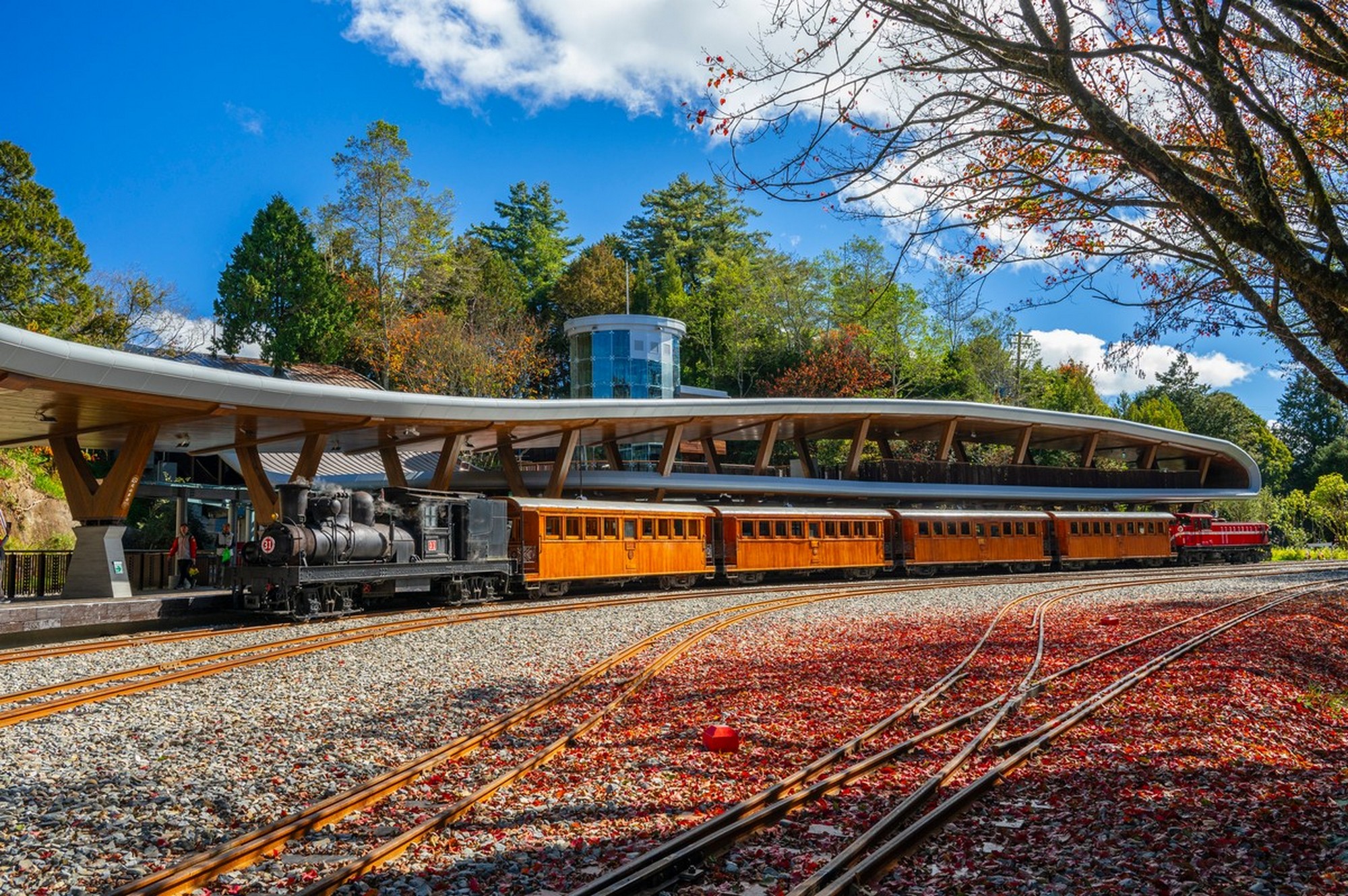 林業及自然保育署阿里山林業鐵路及文化資產管理處(林鐵及文資處),在舒適宜人的秋季推出「楓度翩翩」主題列車遊程,全程行駛國寶級蒸汽火車31號附掛全臺灣檜木所打造的檜木車廂,前往林鐵特色車站及賞楓秘境,感受百年林鐵穿梭林間聆聽森音、體驗山林的寧靜美好及高山鐵道魅力。