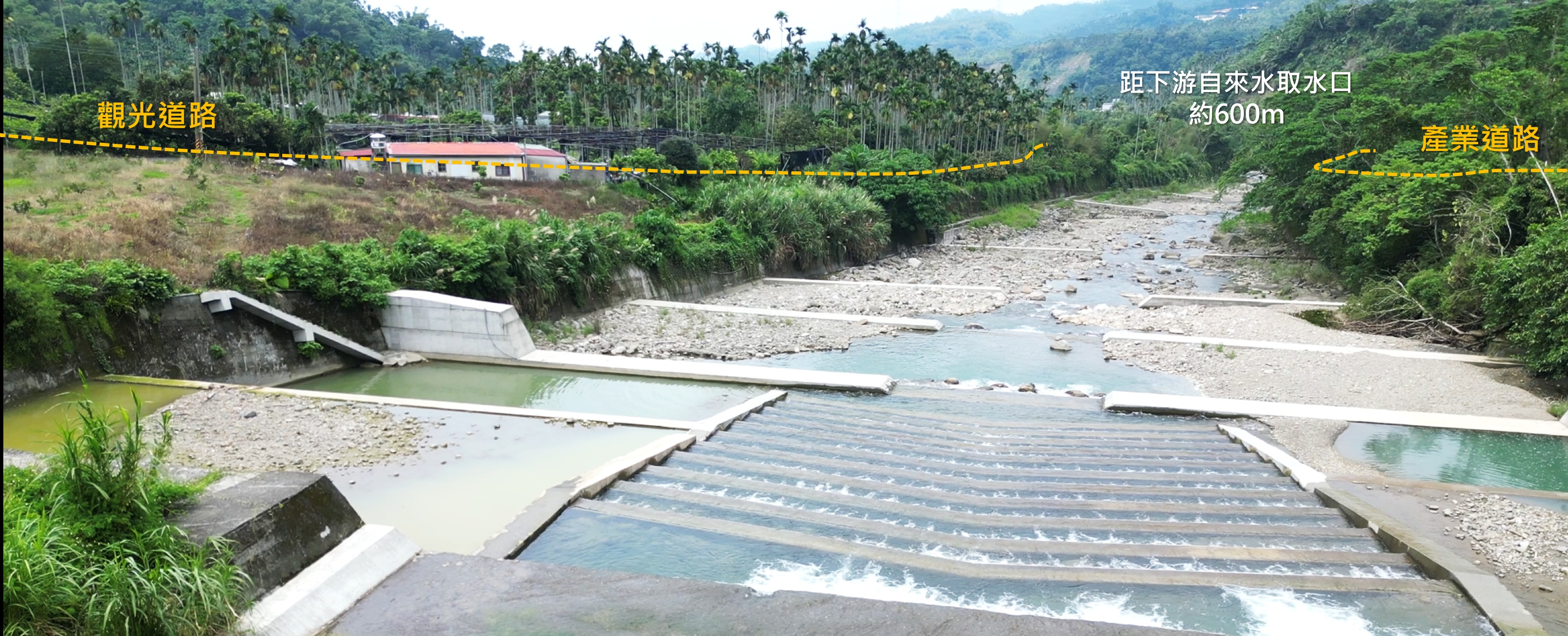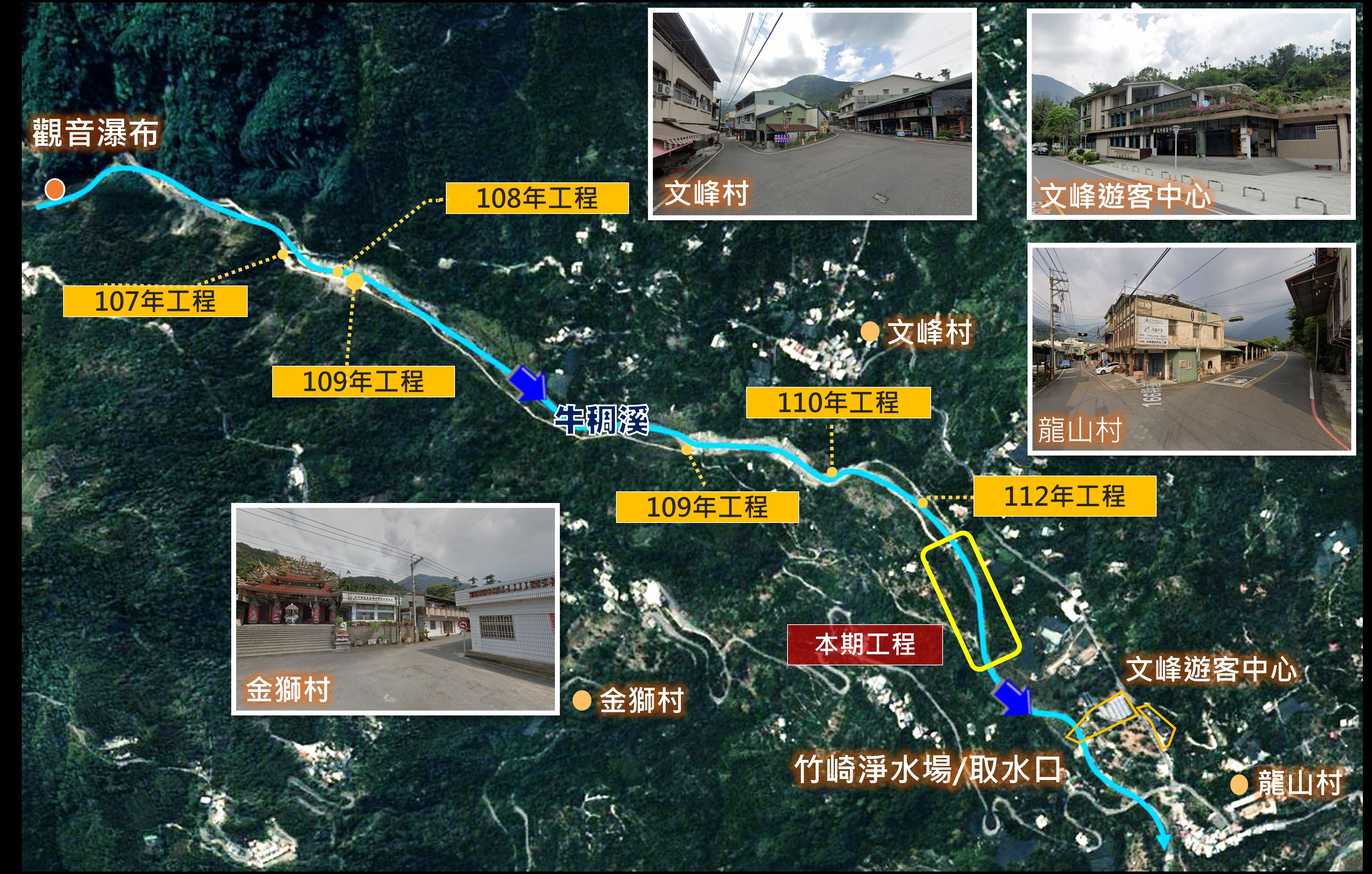 林業及自然保育署嘉義分署為配合嘉義縣政府「觀音瀑布風華再現計畫」,自107年起持續推動牛稠溪流域整治,113-114年度執行「竹崎鄉牛稠溪田仔腳區域排水改善工程第三期」完成區域治理最後一哩路,保障觀音瀑布聯外道路及下游文峯、金獅、龍山等聚落的安全,並為台灣自來水公司竹崎淨水場帶來穩定水量與水質,全面提升流域整體防災與水資源永續運用,更為地方觀光產業奠定基石。