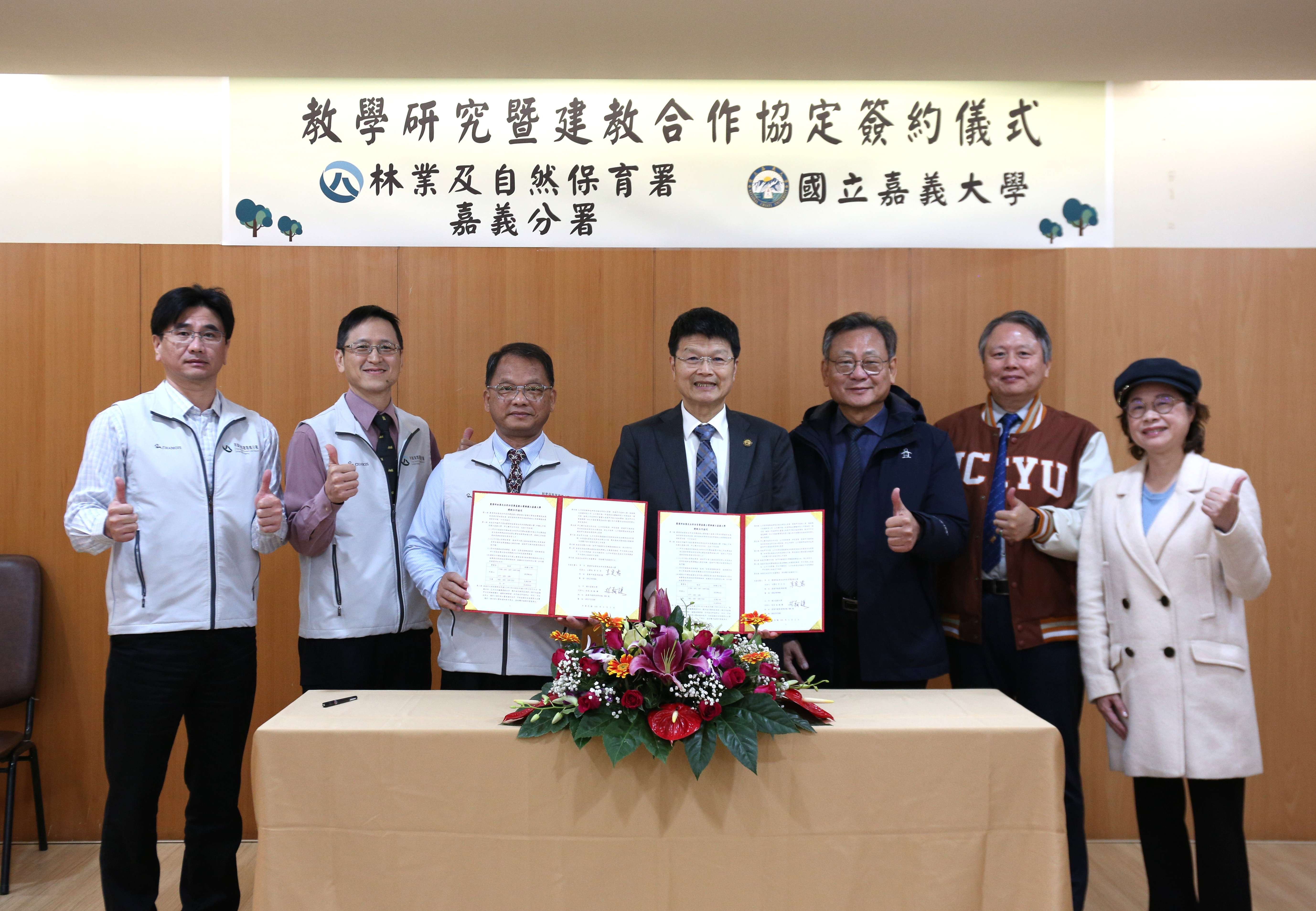為落實國有林森林資源保育與永續經營政策,農業部林業及自然保育署嘉義分署與國立嘉義大學於今(2)日正式簽署「教學研究建教合作協定」,雙方將攜手推動教學研究合作計畫,於嘉義縣大阿里山地區部分林班地設置教學研究實驗林場,面積合計15,459.01公頃,結合官學資源,為森林與生態科學研究提供重要場域,共同強化森林科學研究、環境教育及專業人才培育。