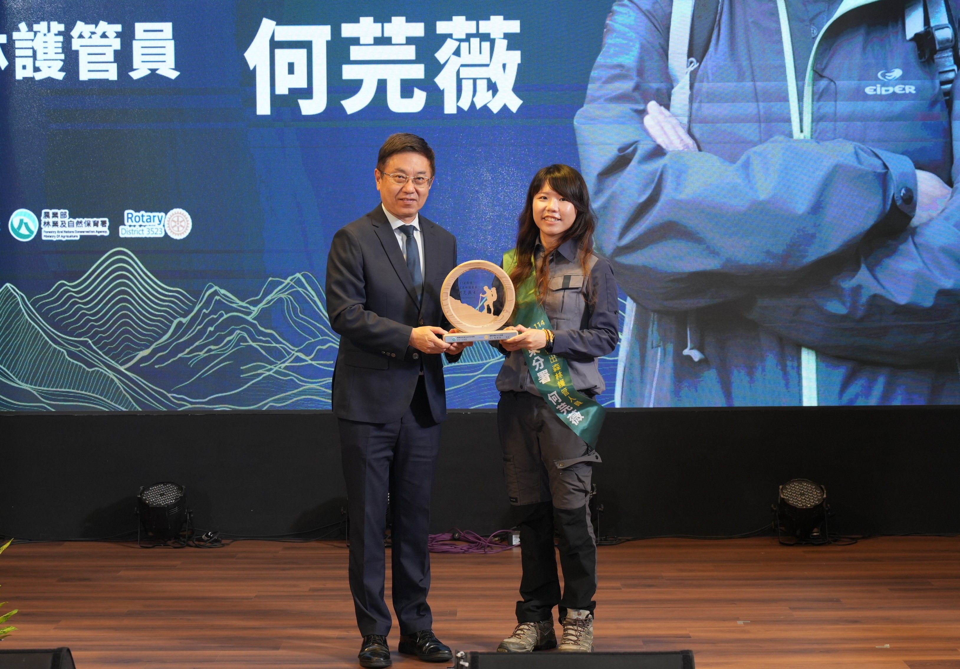 獲選傑出森林護管人員的何芫薇,目前服務於屏東分署恆春工作站,是為數不多的女性護管員之一,因熱愛山林、珍視自然保育的重要,畢業不久就加入森林護管員的行列,服務至今已有10個年頭。林業保育署表示,何芫薇不僅是本次傑出森林護管人員,亦曾獲選107年度優秀女性森林護管員,平時除了負責森林火災搶救、野生動物監測巡查、造林監工等重要業務外,更積極將無人機、自動監測相機等科技設備應用在各項業務,突破傳統林業思維,展現出專業與創新並俱的一面。
