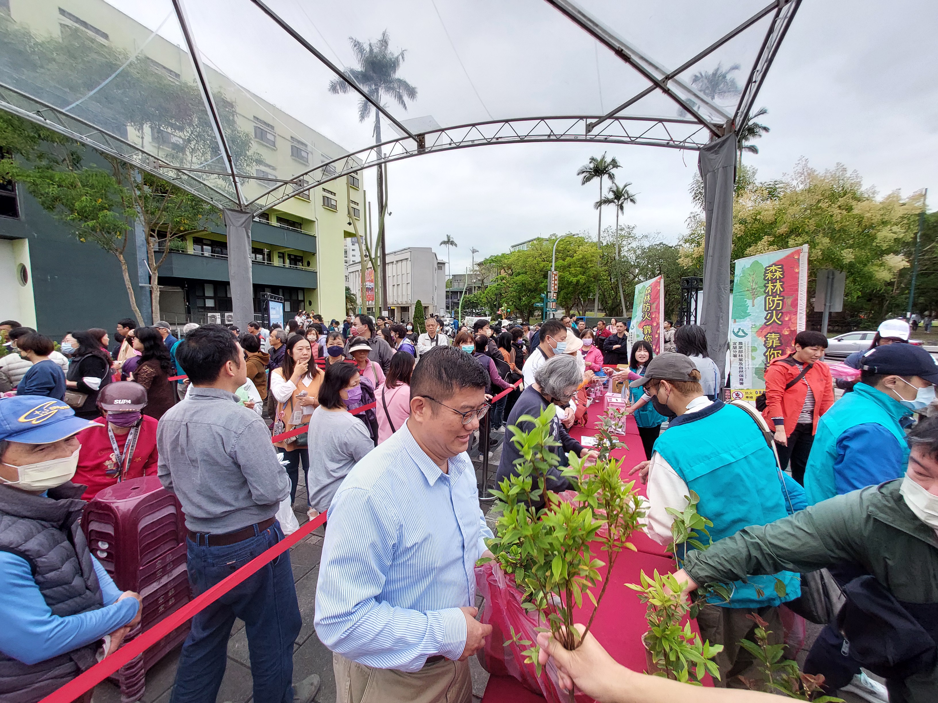 林業及自然保育署宜蘭分署與宜蘭市公所於今(3/21)日上午,在宜蘭市民之森廣場舉辦「115年植樹月及綠美化表揚活動」暨「原地扎根・韌性森活」贈苗活動,現場由宜蘭分署副分署長鄧江山、宜蘭市市長陳美玲及宜蘭縣議會議長張勝德等人與民眾攜手推動宜蘭市市綠美化與生態永續。 宜蘭分署分署提供桂花、台灣原生種山黃梔、烏來杜鵑及共1,200株苗木,以3張115年統一發票兌換1株苗木,吸引民眾熱情參與。本分署募集之發票全數捐贈宜蘭縣社會福利聯合勸募基金會,使綠化行動同時兼顧公益關懷,展現環境與社會共好的力量。活動現場除介紹苗木特色也特別示範苗木移植教學,引導民眾掌握種植技巧,提升植栽存活率,讓每一株苗木都能真正扎根成長。 「原地扎根・韌性森活」不僅是一場贈苗活動,更是一項從日常生活出發的環境行動。透過推廣適地適種的原生或常見樹種,鼓勵民眾親手植樹,讓綠意由個人生活向外延伸,逐步累積成城市整體的生態網絡。