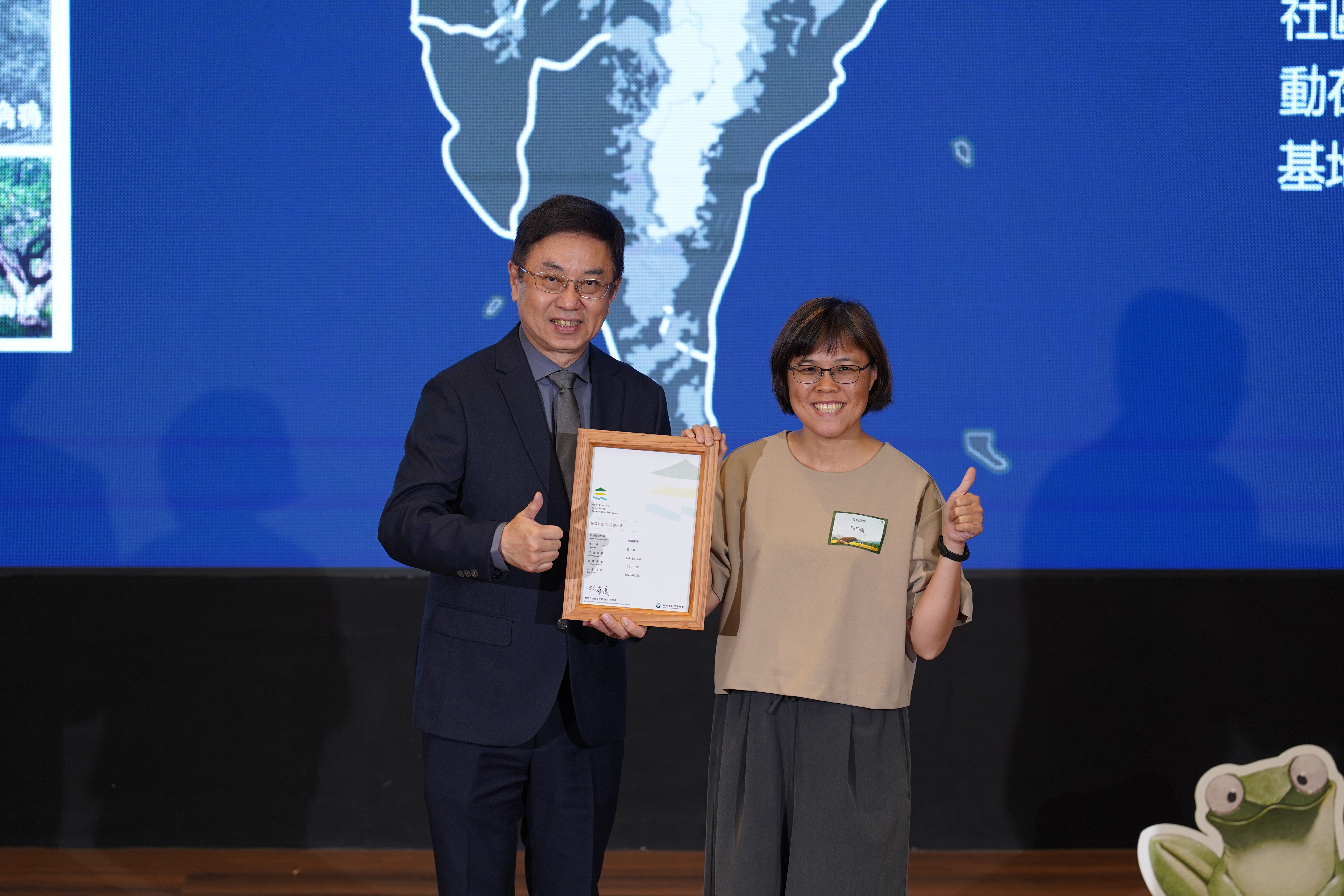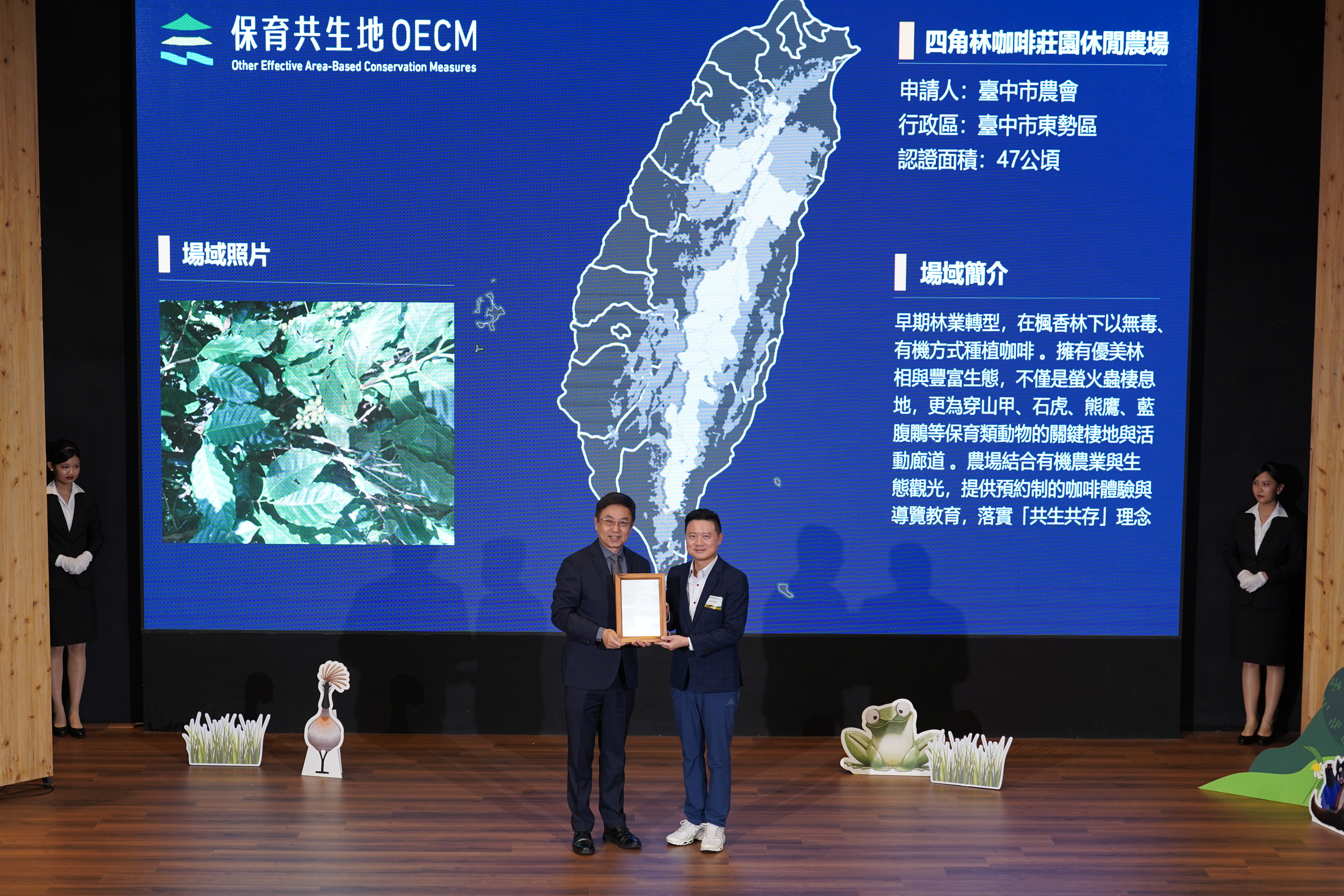 為響應《昆明-蒙特婁全球生物多樣性框架》目標,林業及自然保育署於昨(25)日舉行首屆「保育共生地授證暨成果發表會」。在全臺首批通過認證的65處場域中,林業保育署臺中分署轄內共有9處場域脫穎而出,這些場域不僅成功營造石虎、穿山甲等保育類野生動物棲地,串聯臺中國土綠網關鍵廊道,更是臺灣達成「2030年陸域受保護面積30%」目標的關鍵拼圖。 林業保育署臺中分署說明,本次中部通過保育共生地OECM認證的9處場域,涵蓋農友、大學、農會、企業、公營事業、NGO、河川及科學園區等單位響應申請,包括「大甲溪發電廠馬鞍壩區域」、「東海大學教師宿舍區保育共生地」、「二呆農園」、「筏子溪(市政路至王田圳)」、「食柑農場」、「台積電晶圓15A廠綠帶空間」、「花果山下」、「臺中科學園區」、「四角林咖啡莊園休閒農場」,在各單位既有經營管理下,讓場域內石虎、穿山甲、食蛇龜、巴氏銀鮈、食蟹獴、臺灣鮰、黃胸黑翅螢、狗花椒…等野生物種得以共生,充分展現公私協力守護中臺灣生物多樣性之成果。 其中,位於台中市石岡區的「食柑農場」以無農藥、無化肥及草生栽培等友善經營方式,已獲得綠色保育及友善石虎農作標章認證。農場主動架設紅外線自動照相機記錄到石虎、大冠鷲、領角鴞、黑眉錦蛇……等保育類動物,農場代表陸巧嵐獲頒認證後興奮表示,「真的很激動!我們對土地的堅持,獲得了林業保育署的肯定。在種植香甜柑橘的同時,也為石虎與無數生物守住了一片家園。這份榮耀屬於支持友善耕作的每一位你!未來我們會繼續努力,讓生產與保育在這片土地共存共榮。」 林業保育署臺中分署指出,「保育共生地」強調在保護區外擴展保育網絡,透過企業、社區、學校及民間團體共同參與,讓生產、生活與生態得以共存。本次9案通過認證,不僅代表在地長期努力獲得肯定,也顯示中臺灣在國土生態綠網推動上已有更進一步的串聯。 林業保育署臺中分署鼓勵各單位共襄盛舉加入保育共生行列,未來也將持續協助轄內潛力區域OECM認證申請工作,串聯社區、公私部門、企業、NGO等多元權益關係人,擴大棲地連結與生態服務功能,攜手經營生活、經濟生產與生態保育和諧的共生場域,讓生物多樣性保育落實在地,共同為臺灣達成「30x30」保育目標貢獻力量。