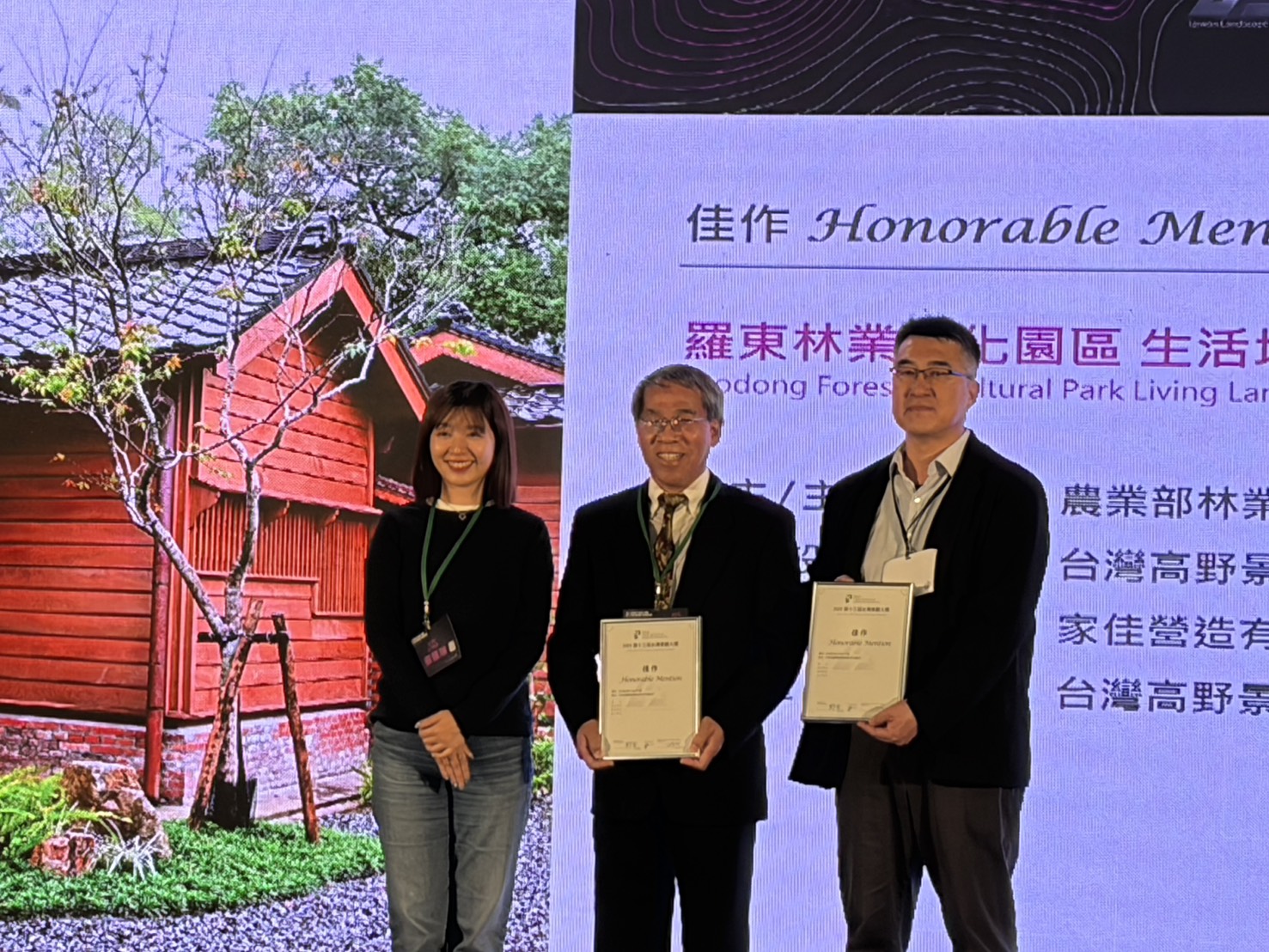 中華民國景觀學會在今(3/28)日舉行頒獎典禮,公布第13屆(2025年) 台灣景觀大獎評審結果,林業及自然保育署宜蘭分署辦理《羅東林業文化園區庭園景觀營造工程》榮獲文化與都市景觀類佳作殊榮,為該類別林業保育署唯一獲獎機關,也是羅東林業文化園區近5年以來,第3件得獎作品。 《羅東林業文化園區庭園景觀營造工程》由台灣高野景觀規劃股份有限公司規劃設計,在擁有百年歷史的羅東林場文化基礎之下,以「產業地景」、「生活地景」及「保育地景」三大架構作為發展藍圖,並聚焦於「生活地景區」,進行歷史建築的「場長宿舍」、雙併宿舍及木造長屋招待所等具高度保存及再利用價值的檜木日式建築群周邊景觀營造;場長宿舍以「海」為庭園設計概念,紀念遠渡重洋而來的歷任場長;雙拼宿舍以「里」為設計概念,擁有生活情感的果樹愜意庭園; 木造長屋招待所以「山」為設計概念,象徵往昔前往太平山途中短暫留宿之處,實踐「保存林場記憶」的核心理念,獲得評審團肯定。 羅東林業文化園區由昔日林業生產核心,轉型為知名熱門的林業文化觀光場域,透過「景觀+建築」的整合策略,使歷史建築不再只是展示空間,而成為可被體驗、被使用、被記憶的生活場景,並延續城市綠肺功能,連結太平山林場歷史脈絡,提供民眾更多元的林業文化、休閒遊憩與環境教育體驗場域。