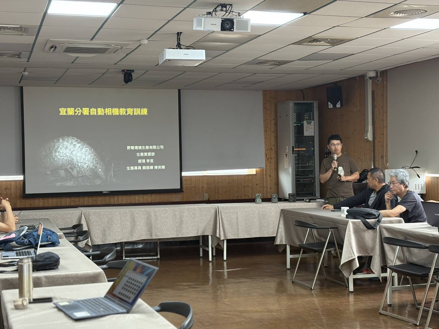野生動物監測工作由現場巡視人員負責執行,包含相機架設、電力維護、影像回收、資料上傳及物種辨識等作業,透過低干擾方式持續蒐集生態資料。本次課程特別邀請野聲環境生態有限公司專業團隊授課,內容著重於紅外線自動相機之架設與維護及資料判斷的精進策略流程,並藉由實務案例分享與交流討論,強化學員現地應用能力。